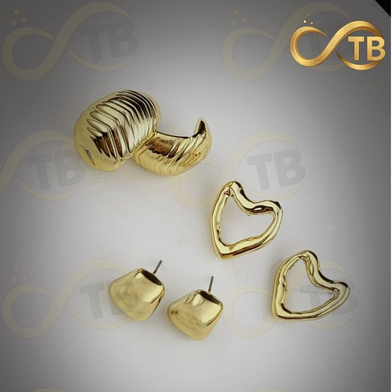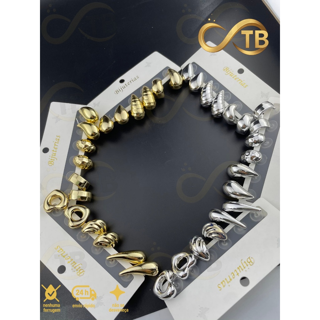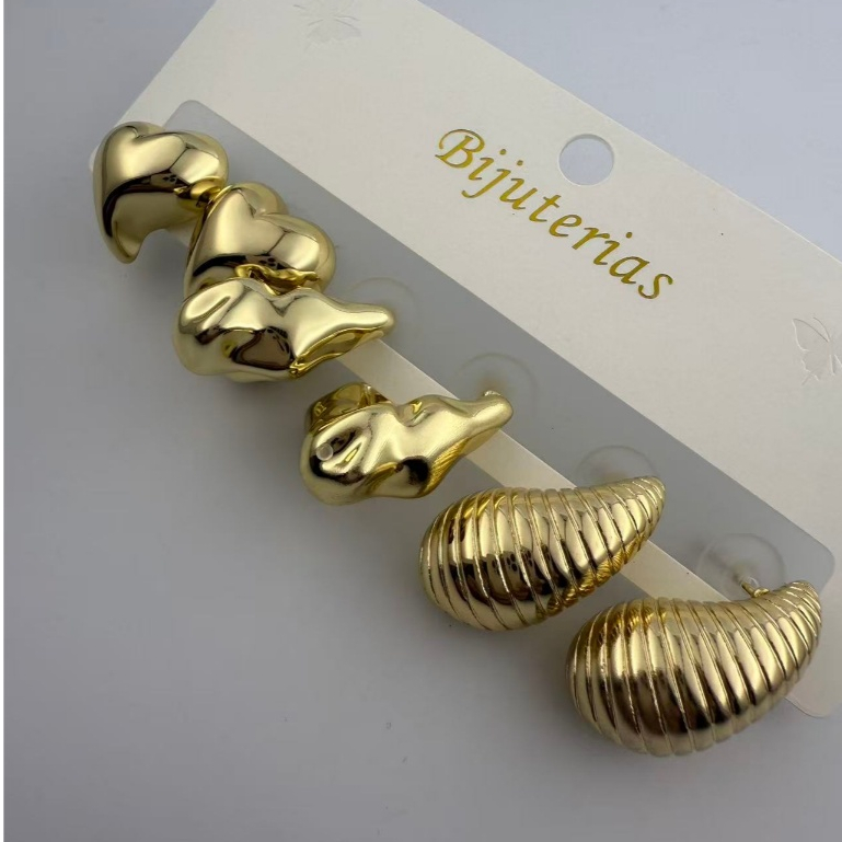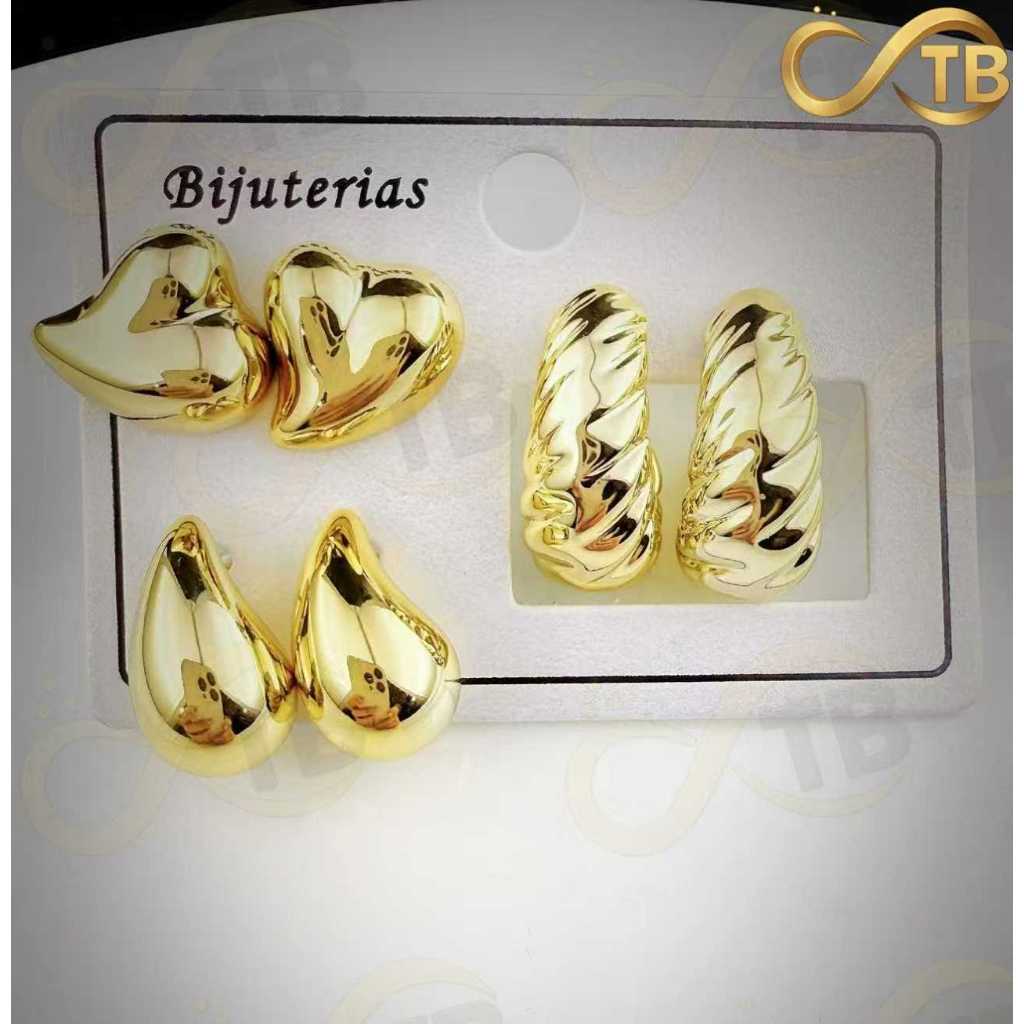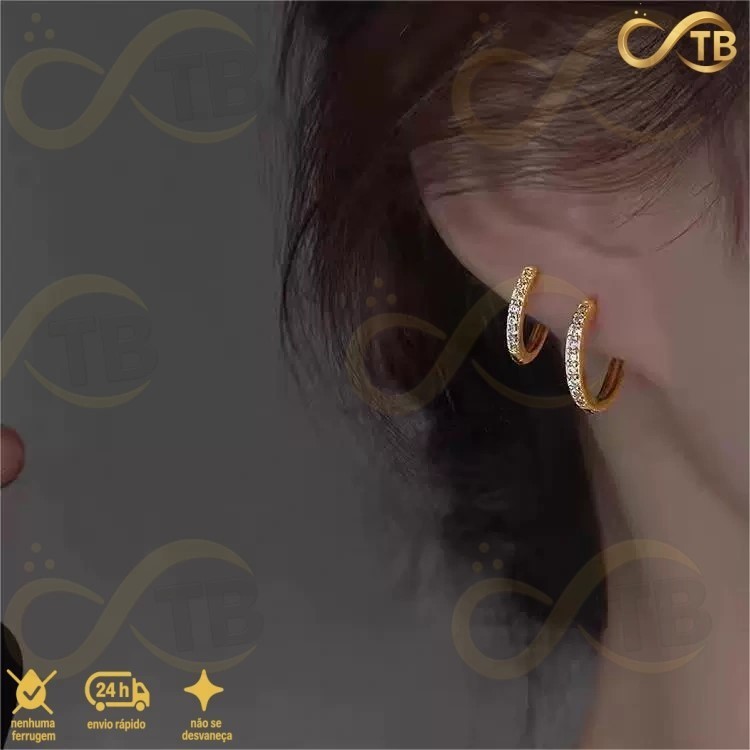 TB Moda Kit 3 pares feminina Brinco Trio Argola BANHADA PRATA 925 A OURO 18K com Zircônia Cravejada
