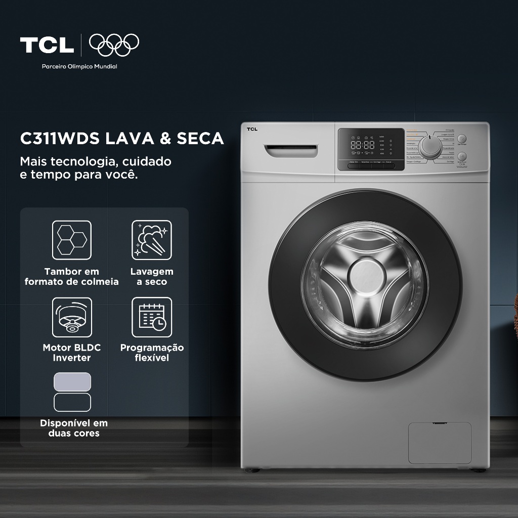 Lava e Seca TCL 11Kg / 7Kg Prata Inverter com lavagem a seco 110V C311WDS1