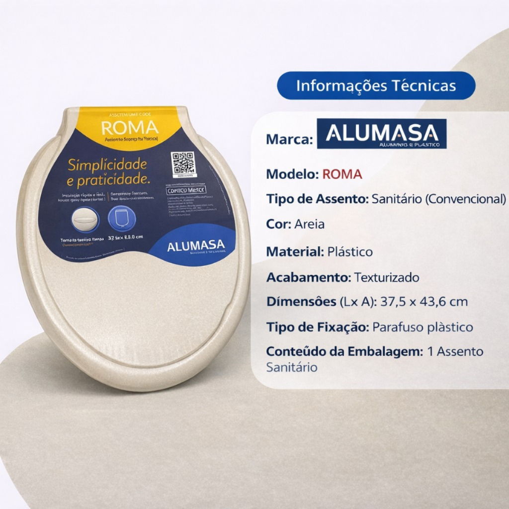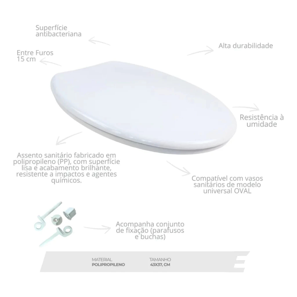 Assento para Vaso Sanitário Universal Tampa Redondo/Oval – Acompanha Kit Instalação Alumasa Hardex
