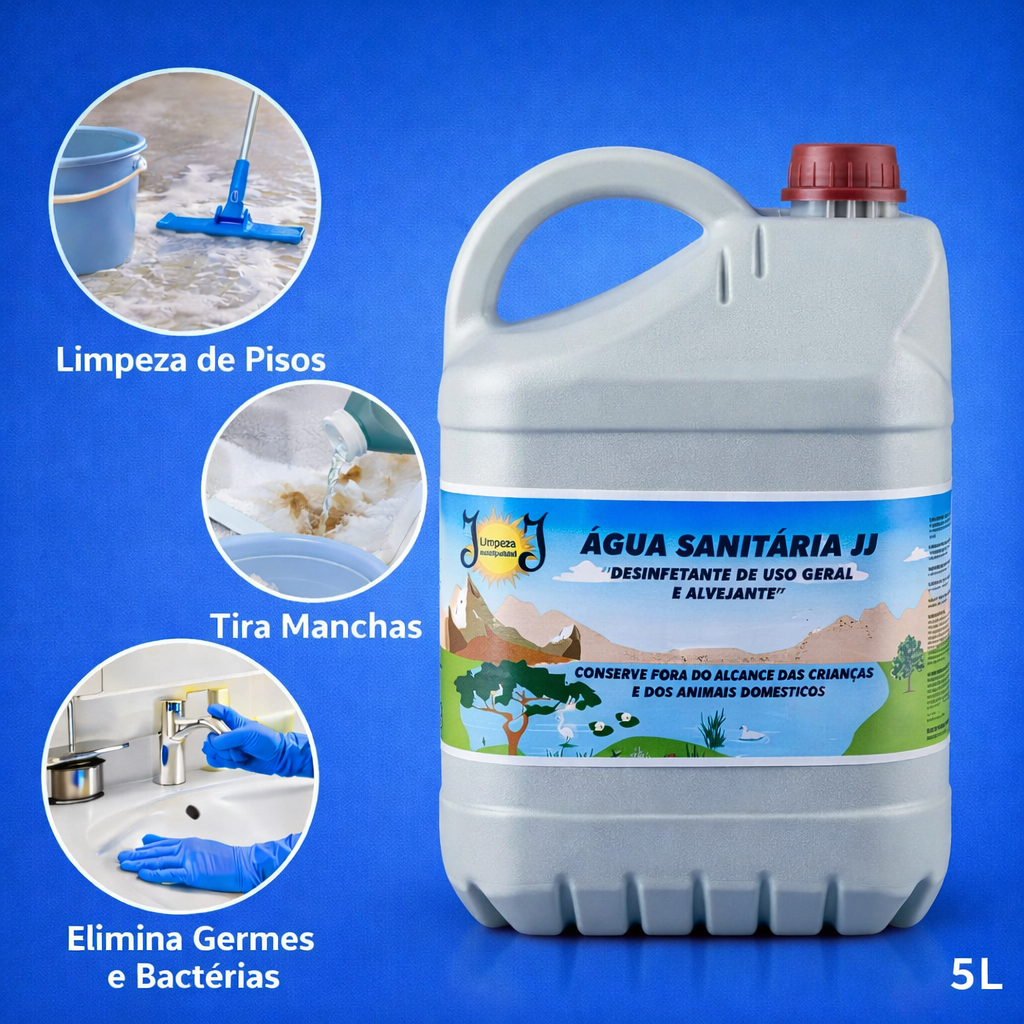 Água Sanitária 5 Litros - Limpeza Pesada, Banheiro, Cozinha, Piso e Roupas