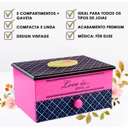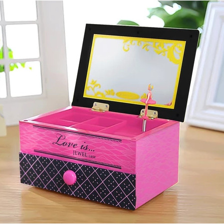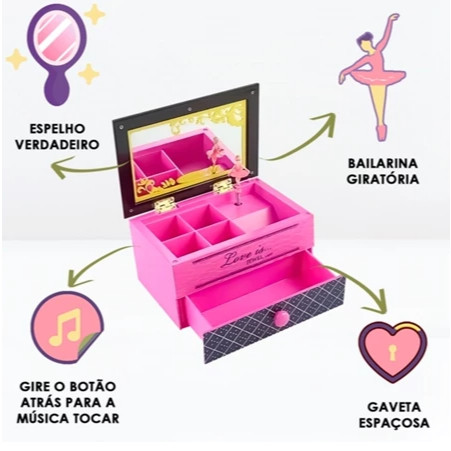 Caixinha de Música Porta Joia Retrô Com Bailarina Dançarina Musical Espelho e Gavetinha