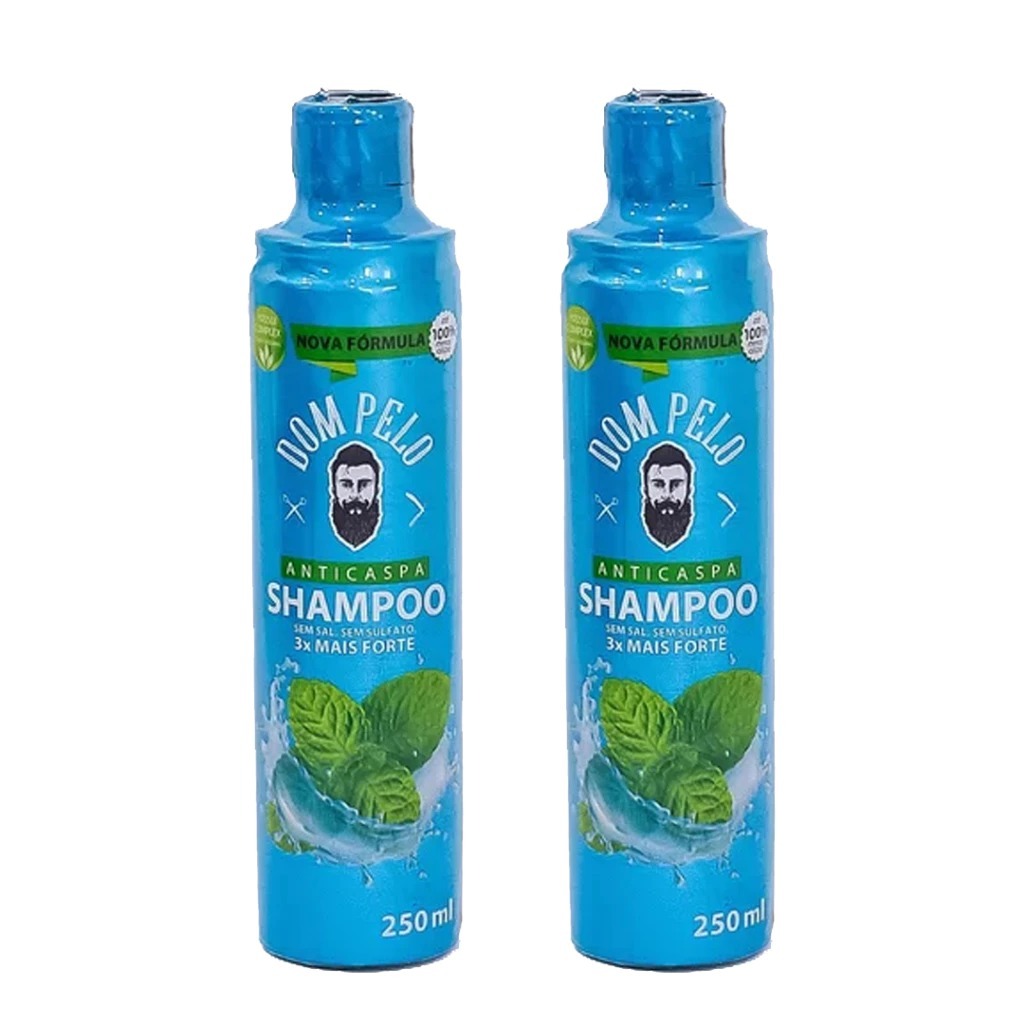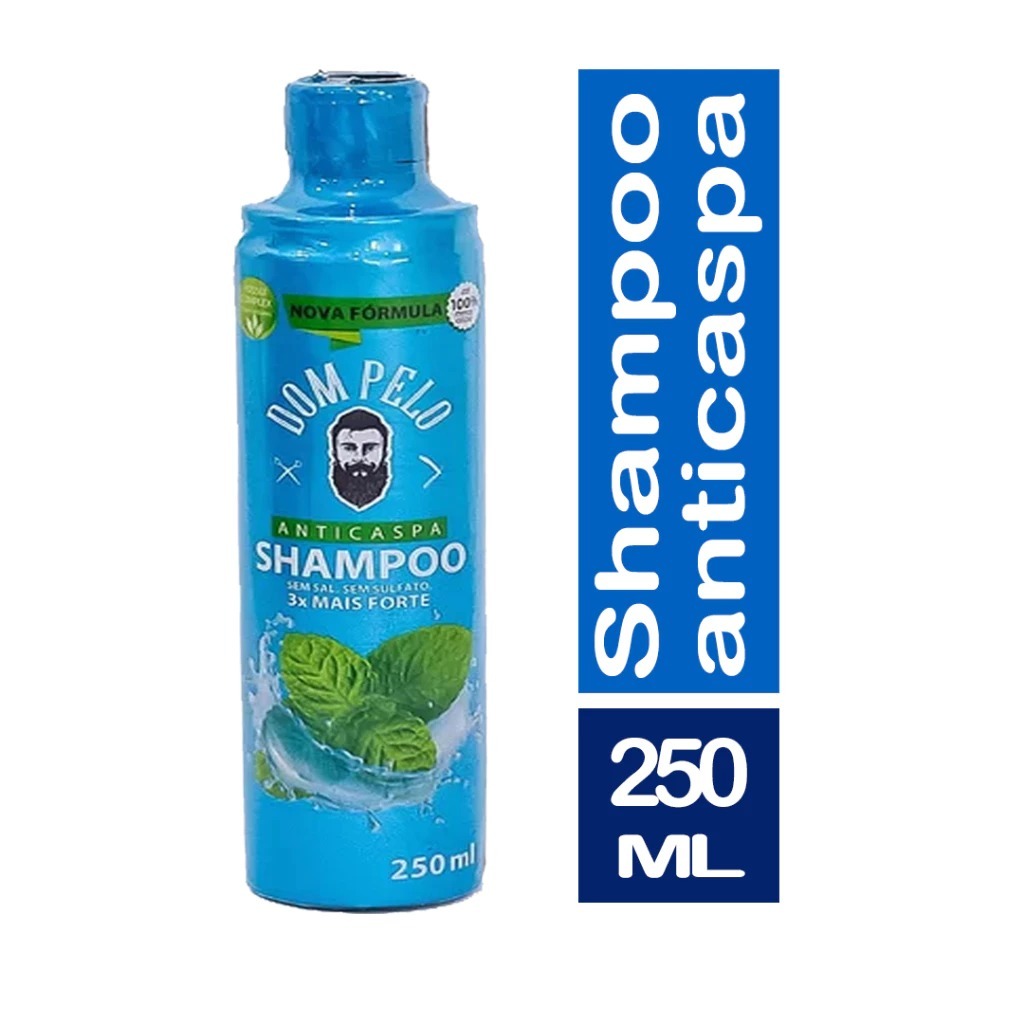 Kit 3 Shampoos Anticaspa Dom Pelo 250ml Nova Fórmula - 3 em 1 para Cabelo, Barba e Bigode - Pronta Entrega