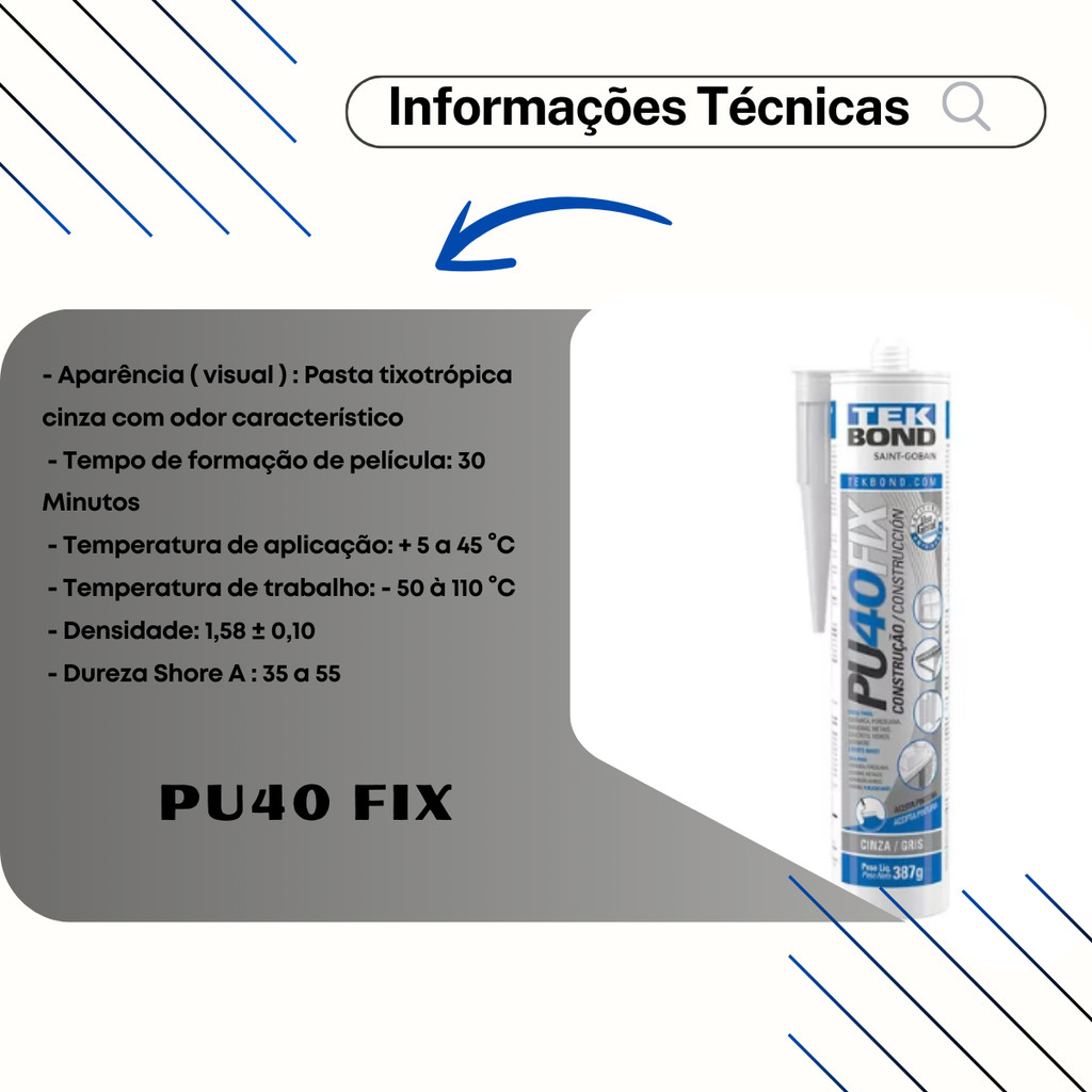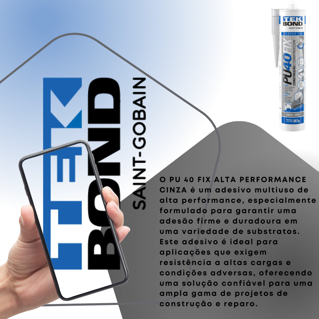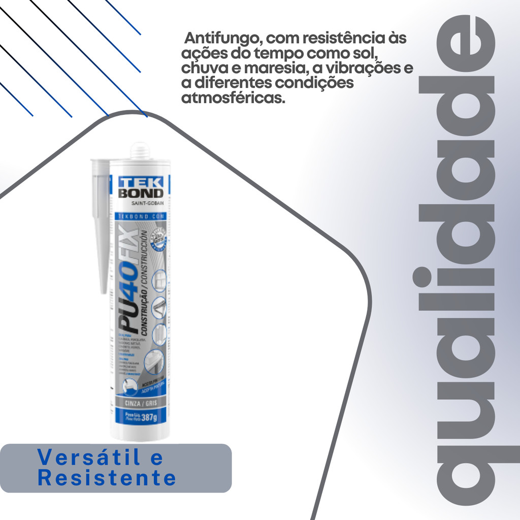 Cola ADESIVO SILICONE PU 40 FIX ALTA PERFORMANCE CINZA ADESIVO MULTIUSO CARTUCHO TEKBOND - SAINT GOBAIN PU, Cinza