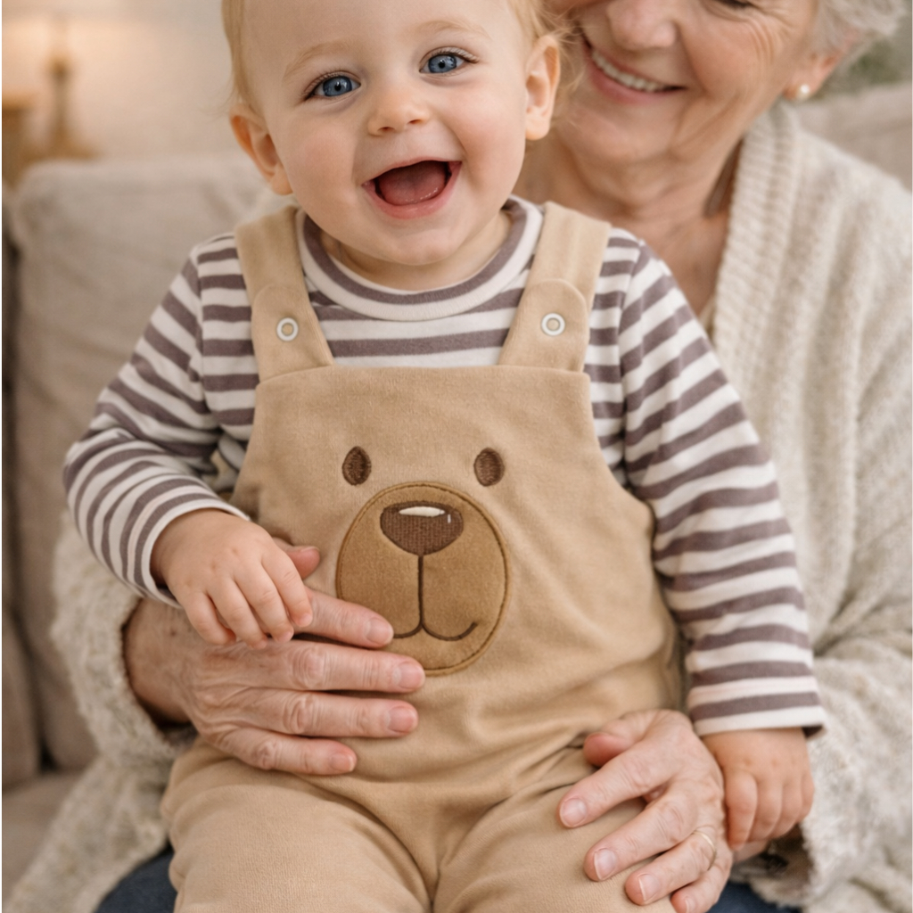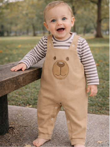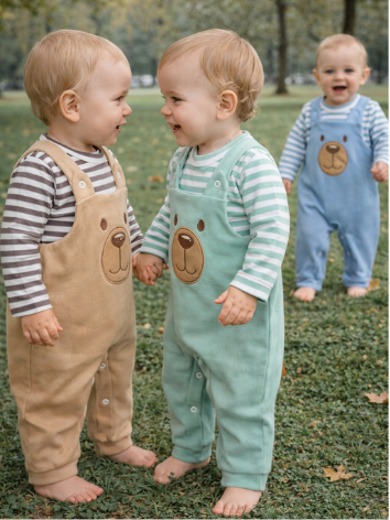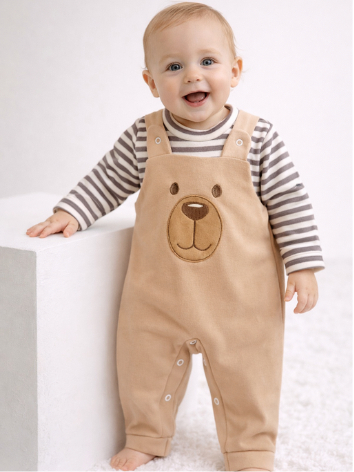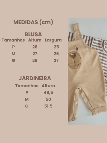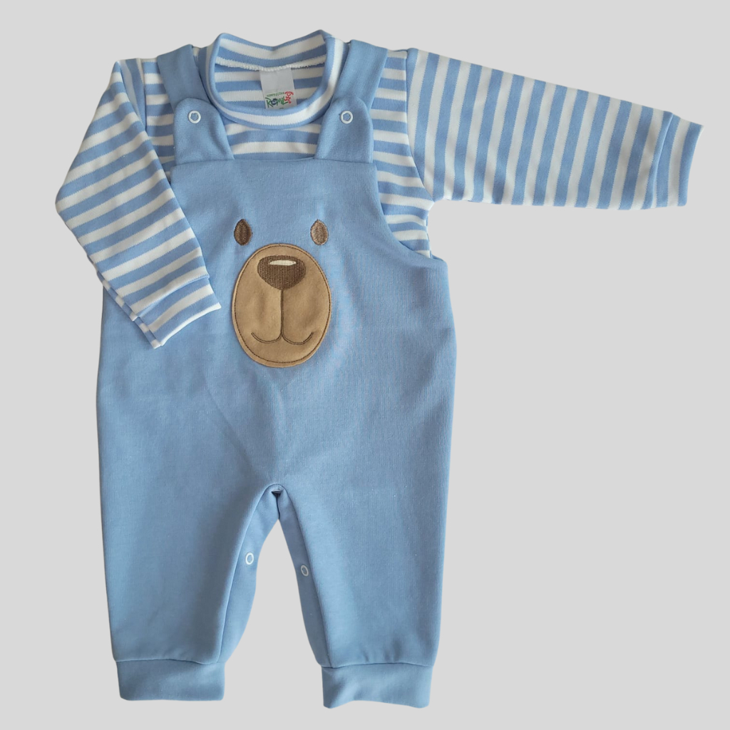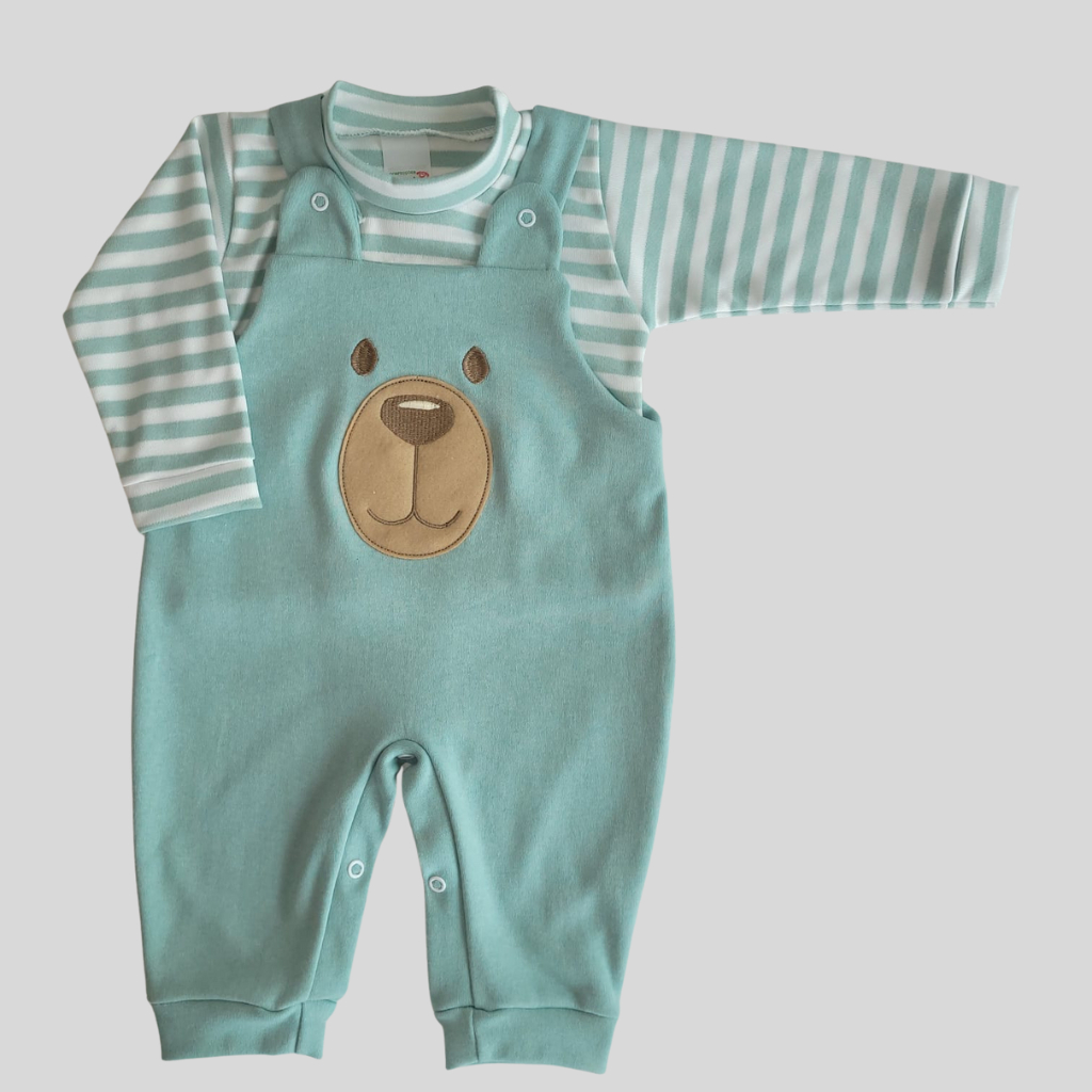 Conjunto para Bebê Menino Jardineira + Camiseta Longa Bordada Listras Inverno Algodão