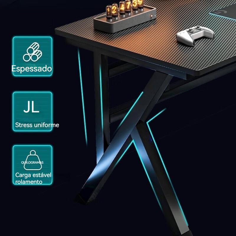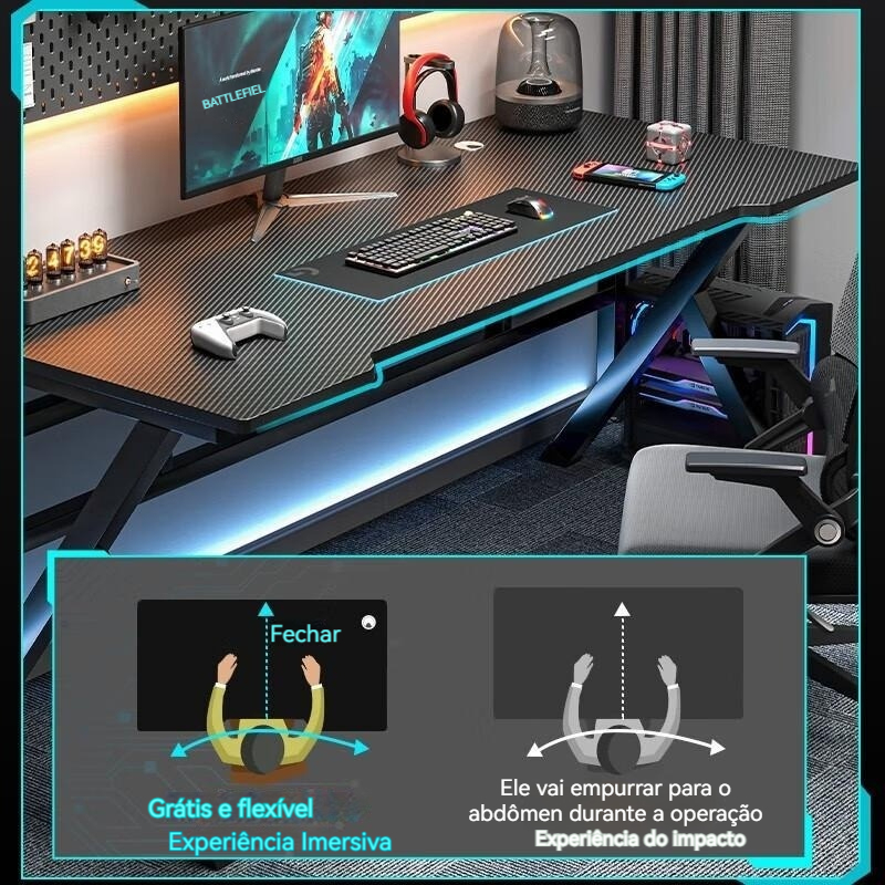 Mesa de jogos com prateleira, carbono anti-riscos, mesa para transmissão ao vivo, mesa para PC