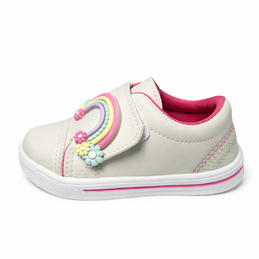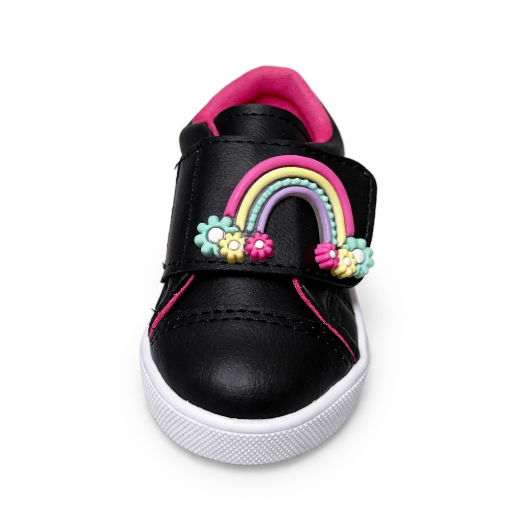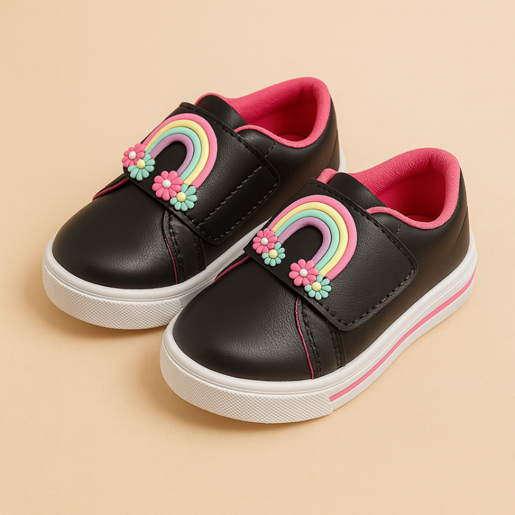 Tênis Infantil Feminino Bebê com Velcro Arco-Íris Confortável Antiderrapante Casual Menina Passeio