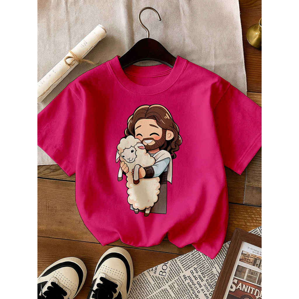 Camiseta Infantil Jesus e o Rebanho 100% Algodão Fofo Estampa Religiosa