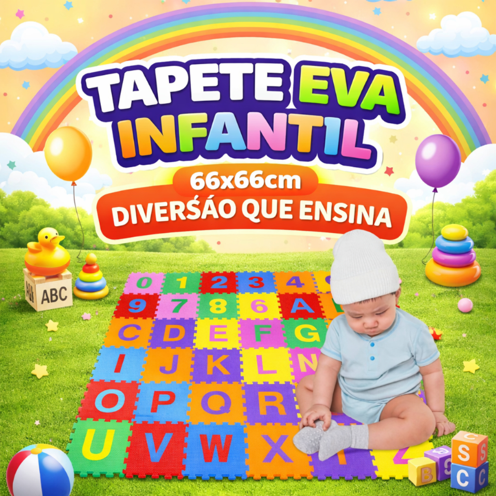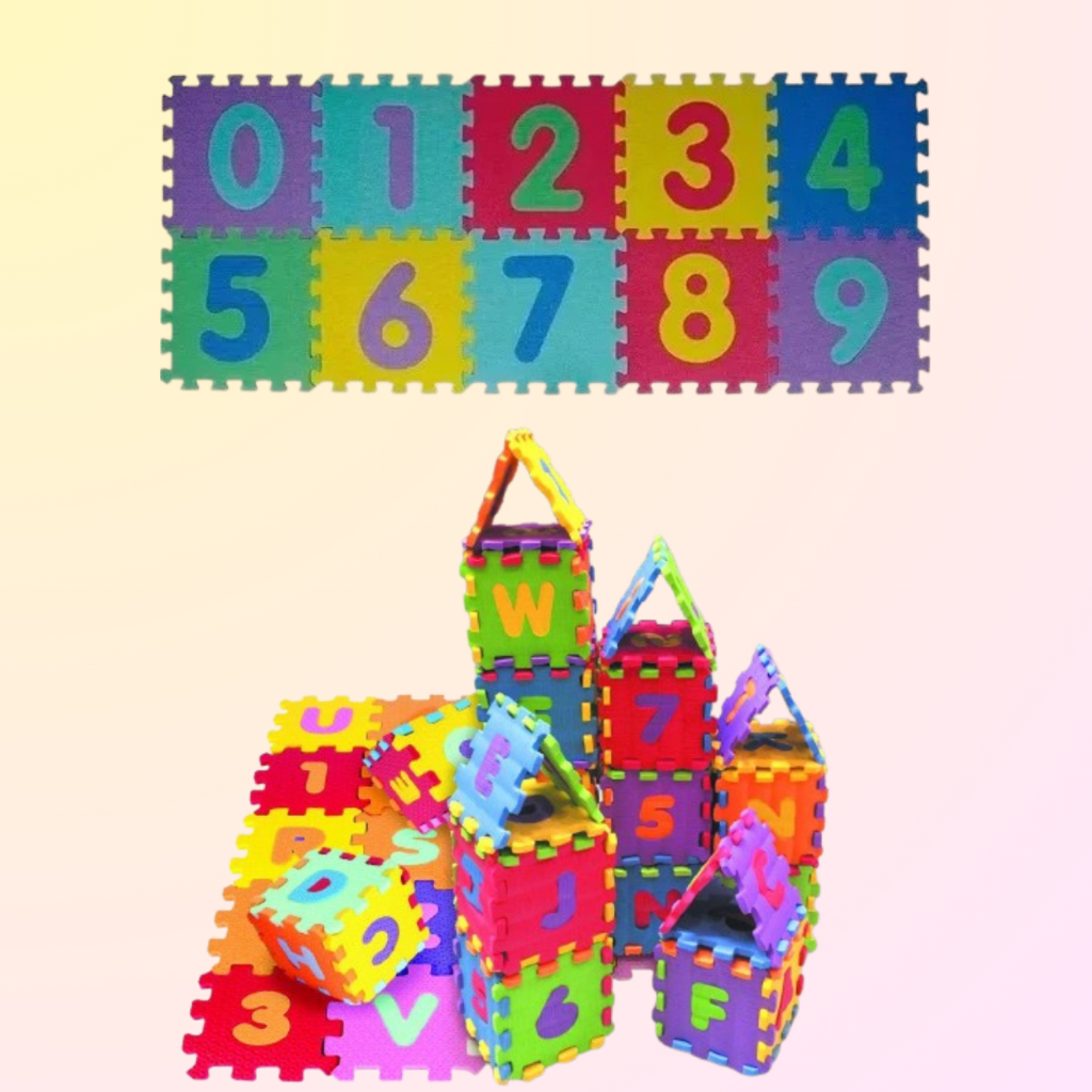 Tapete EVA Infantil Alfabeto e Números Educativo Tatame 36 Peças 12x12cm