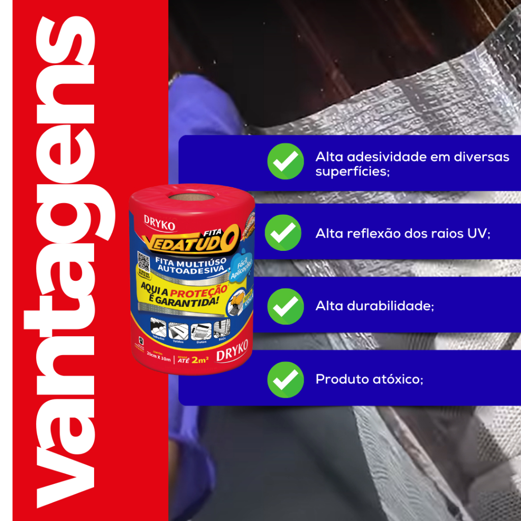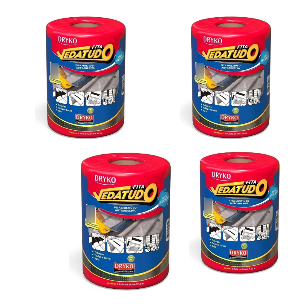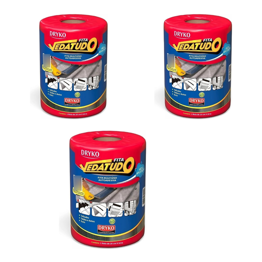 Fita Manta Asfáltica Aluminizada 20cm x 10m Vedatudo Dryko Impermeabilizante Telhado Calha Laje Vedação