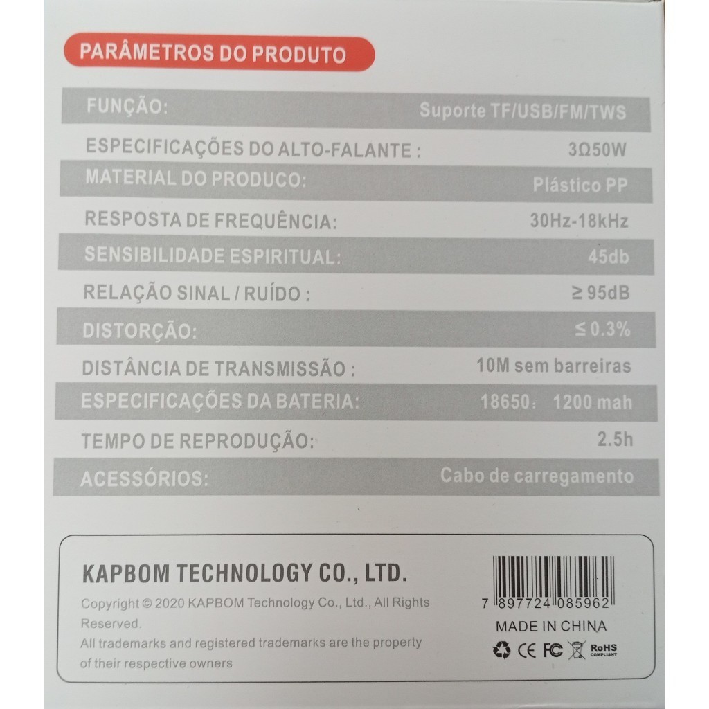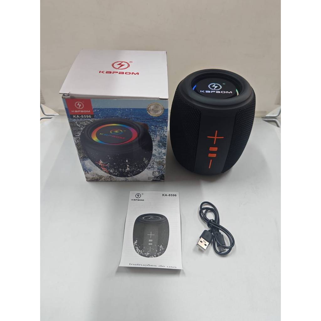Caixa de som portátil Bluetooth Kapbom KA-8596 50W TWS LED/USB/SD/FM com graves potentes