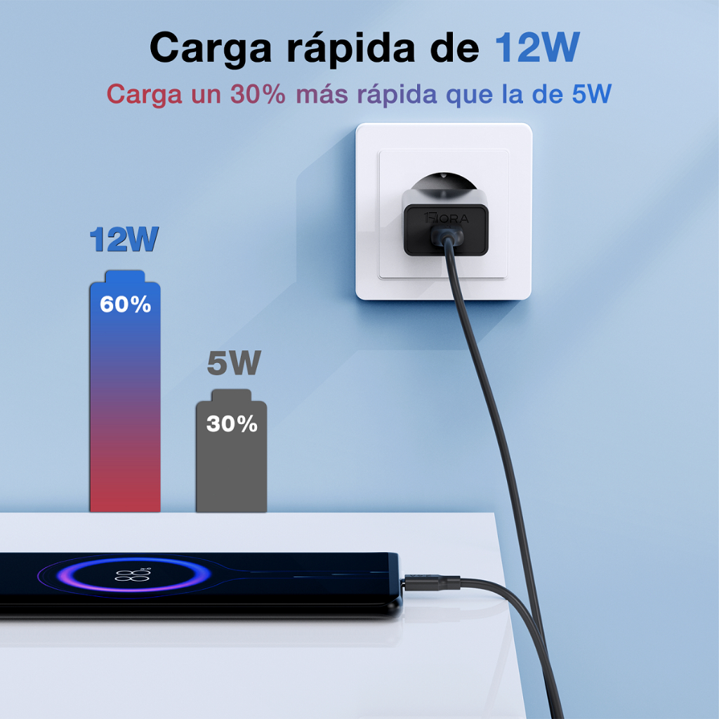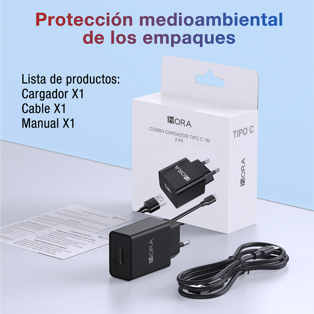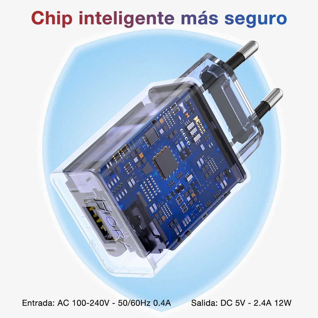 Carregador de Celular Rápido na Tomada 1 Entrada USB e Saída do Cabo Tipo C GAR142 1HORA 2.4A 12W