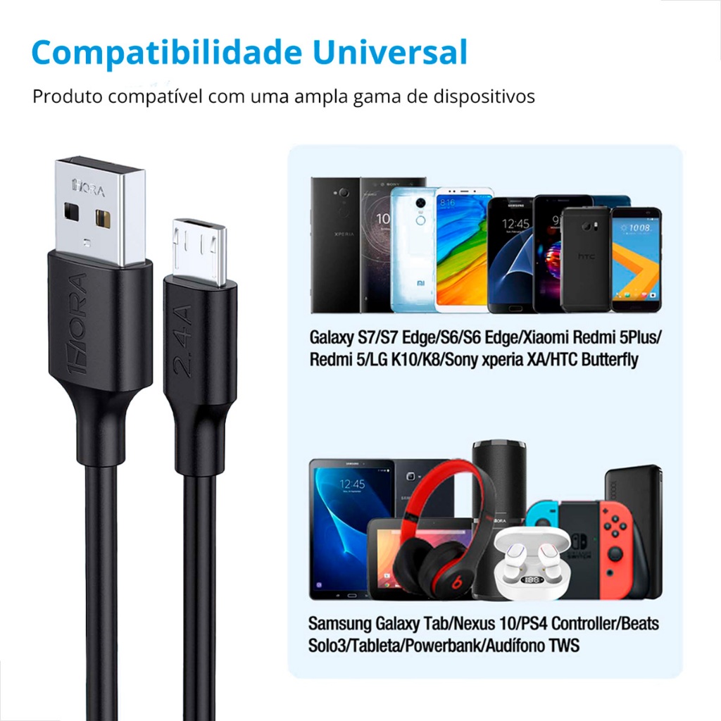 Carregador Rápido Parede Turbo + Cabo V8 Usb Micro-USB Preto
