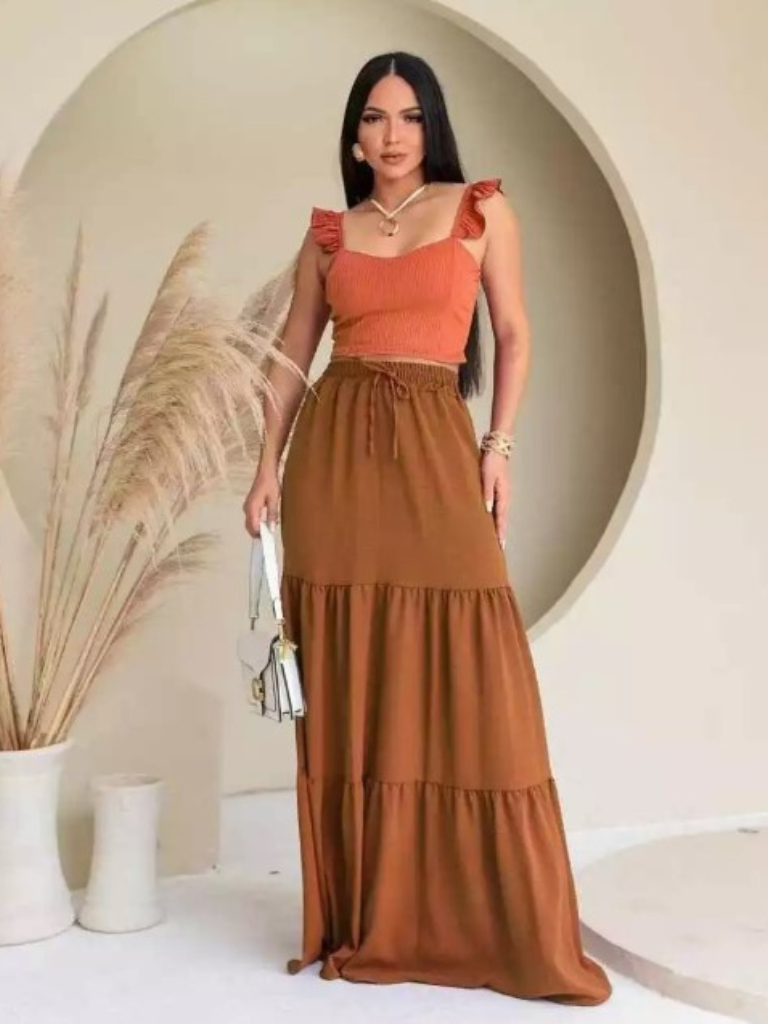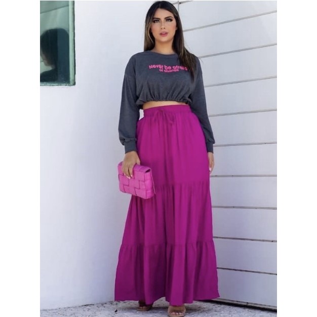 Saia Evangelica Duna Longa Três Marias / Com Forro e Zero Transparente Cintura Alta e Elastico / Tamanhos P ao G1