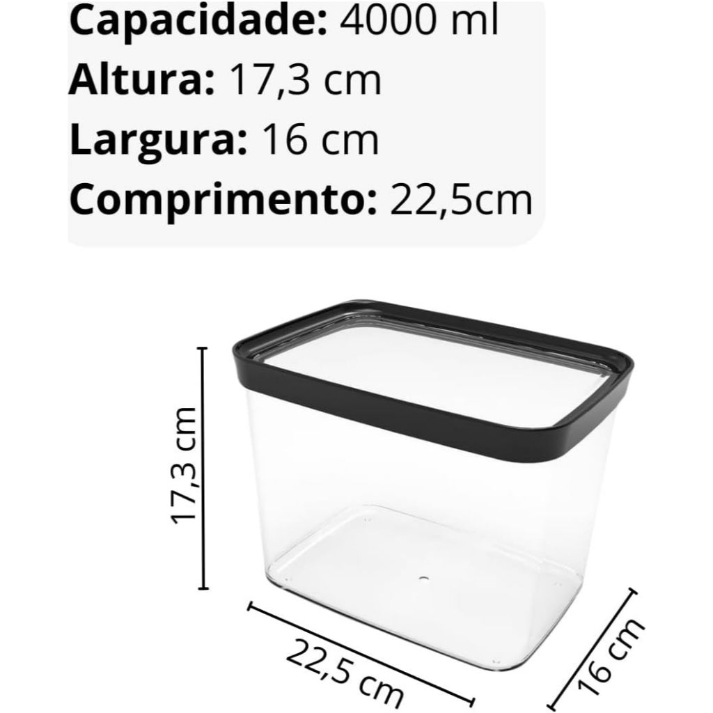 Kit Potes Herméticos para Mantimentos Transparente 4 Litros Helsim - 2 Unidades