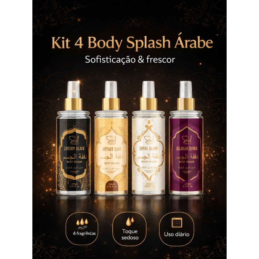 Kit 4 Body Splash Árabe Importado Luxury Attaff Rose Royal Blanc Allibah Rouge Perfumes