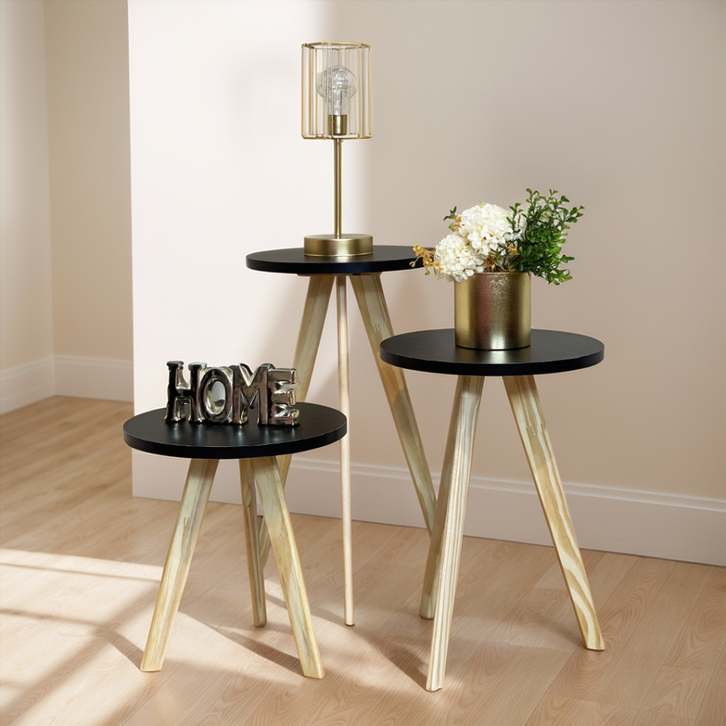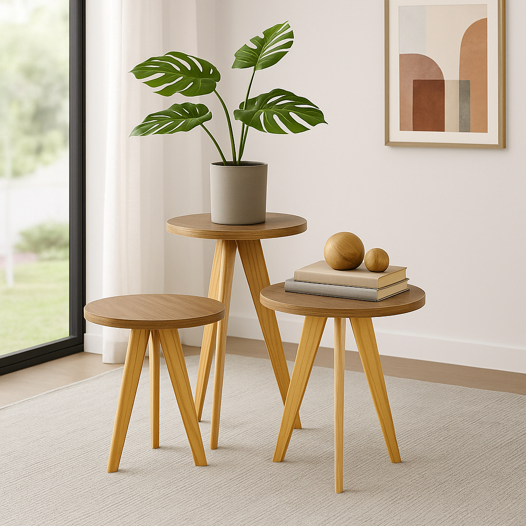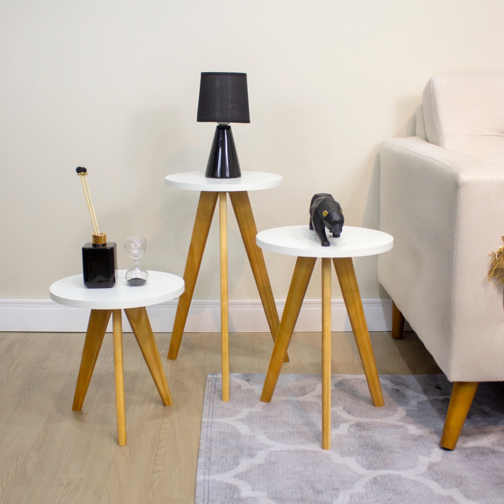 Kit Mesas Laterais, de Centro, Mesa de Cabeceira, Mesa Pé Palito - Madeira Maciça- Moderna