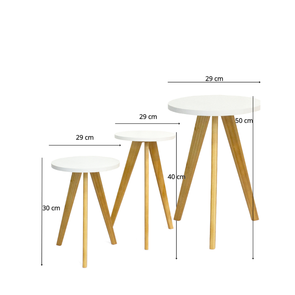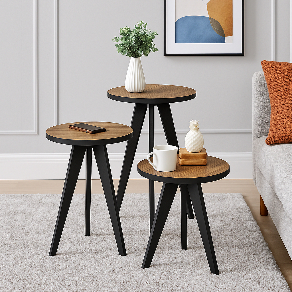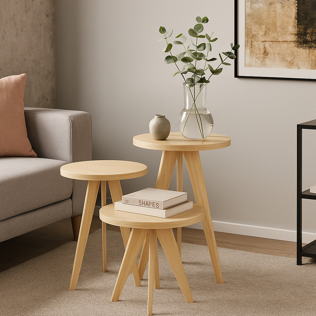 Kit Mesas Laterais, de Centro, Mesa de Cabeceira, Mesa Pé Palito - Madeira Maciça- Moderna