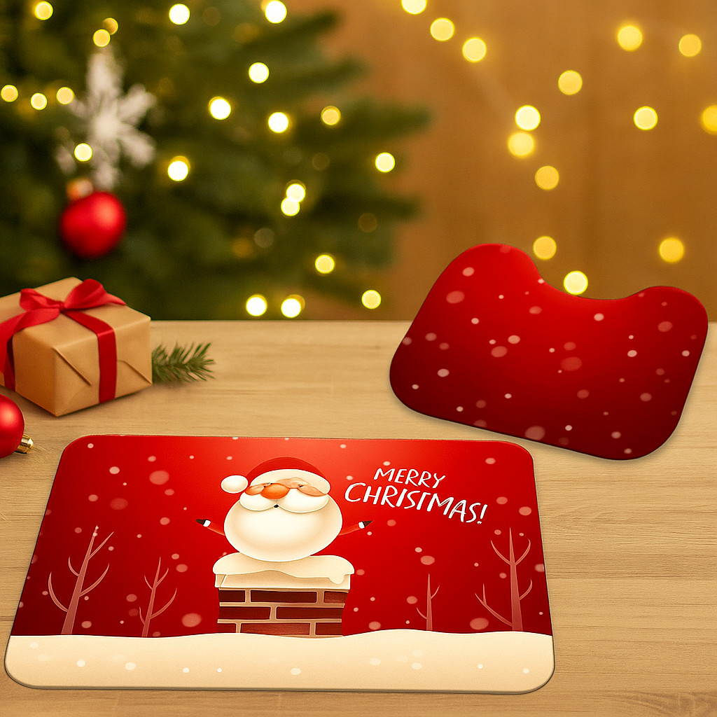 Jogo Banheiro Natal 2 Peças – Tapetes Decorativos Antiderrapantes