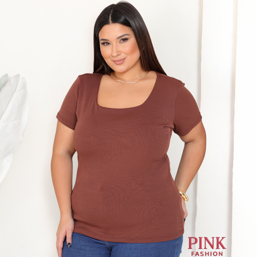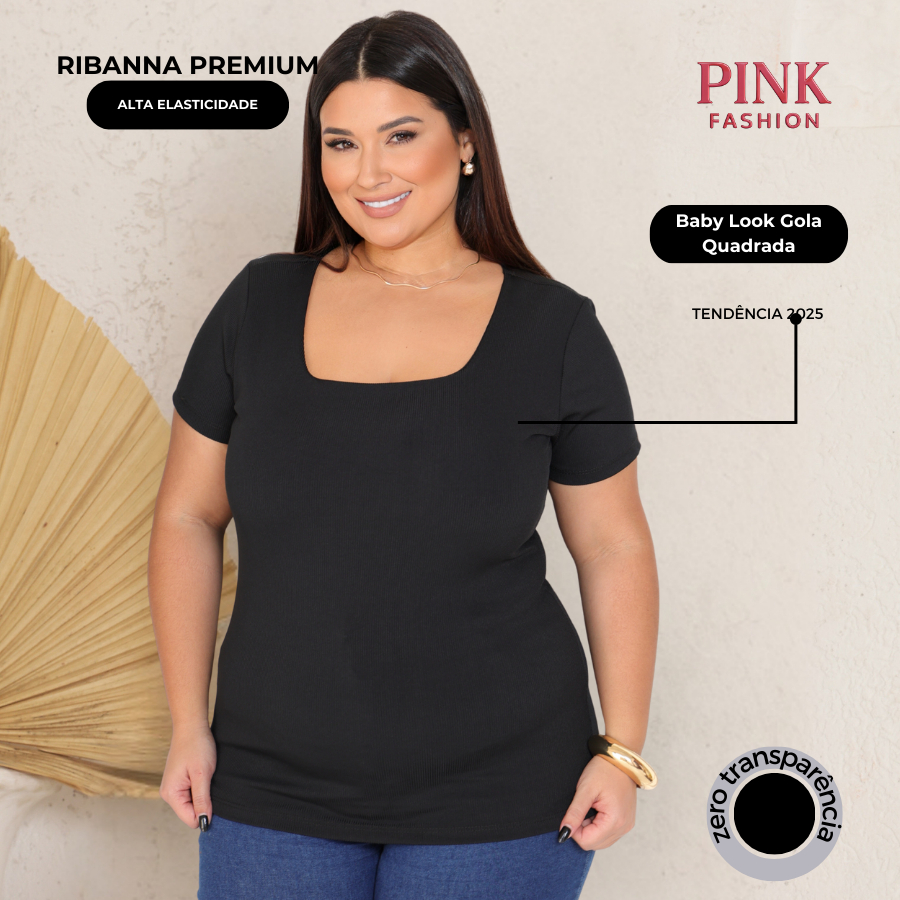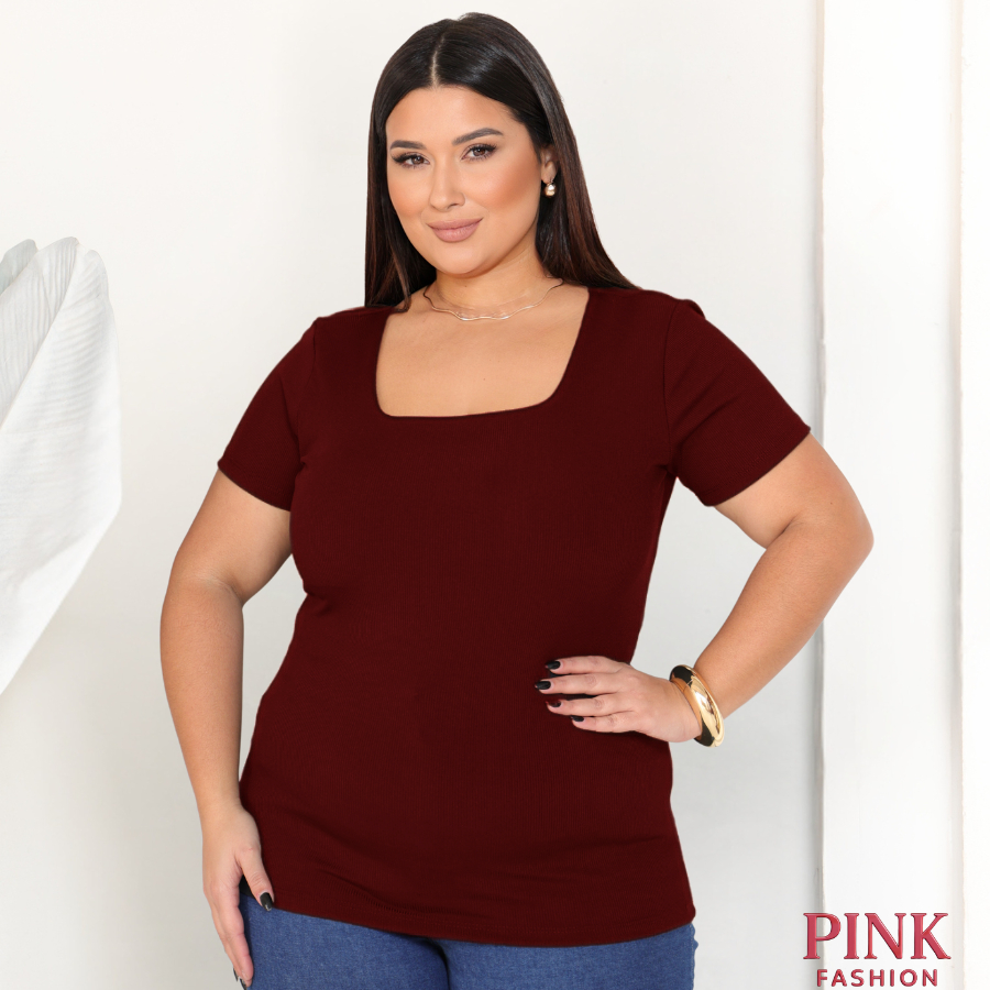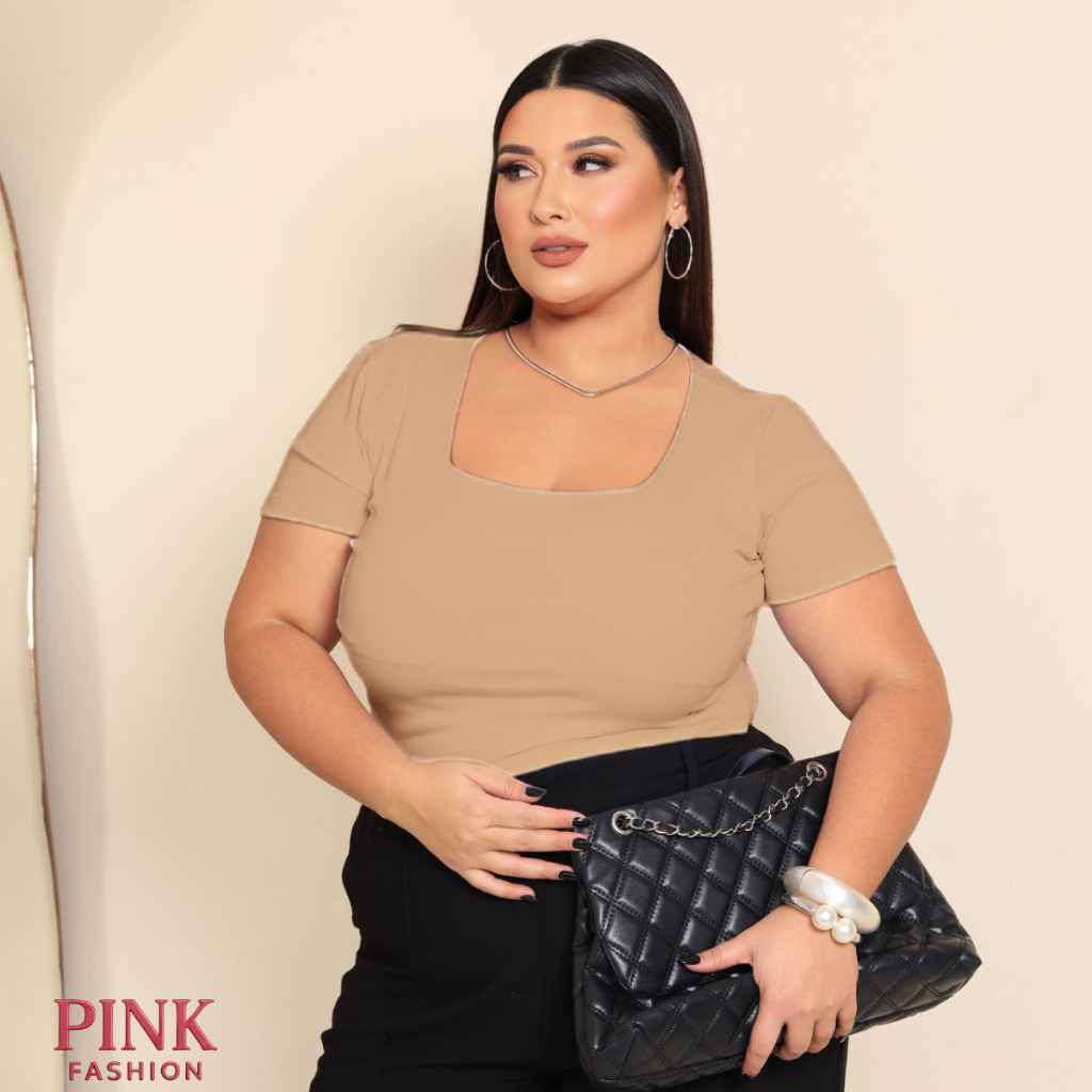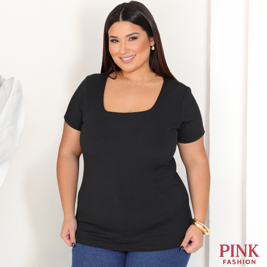 Baby Look Gola Quadrada Ribana Plus Size Canelada Premium Confortável Estilosa