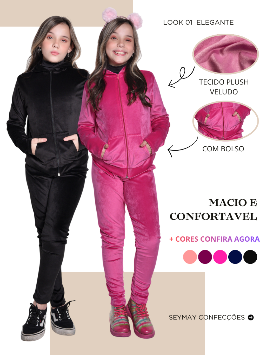 Conjunto Plush Infantil Feminino Menina Veludo com Capuz