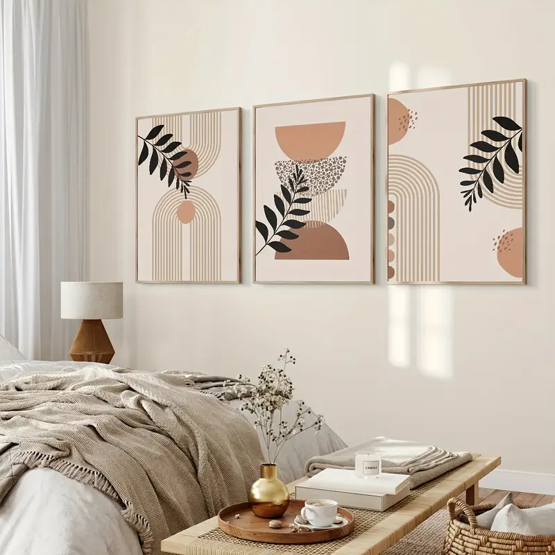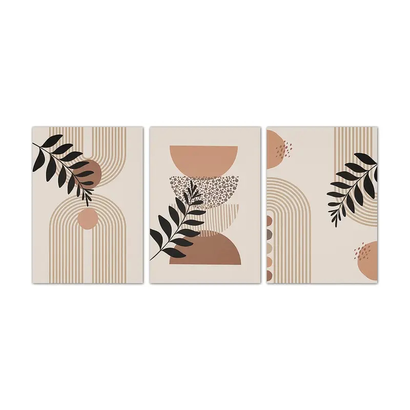 Quadro Decorativo Pintura Botânica de Folha em Semicírculo Geométrico para Quarto, Sala de Estar