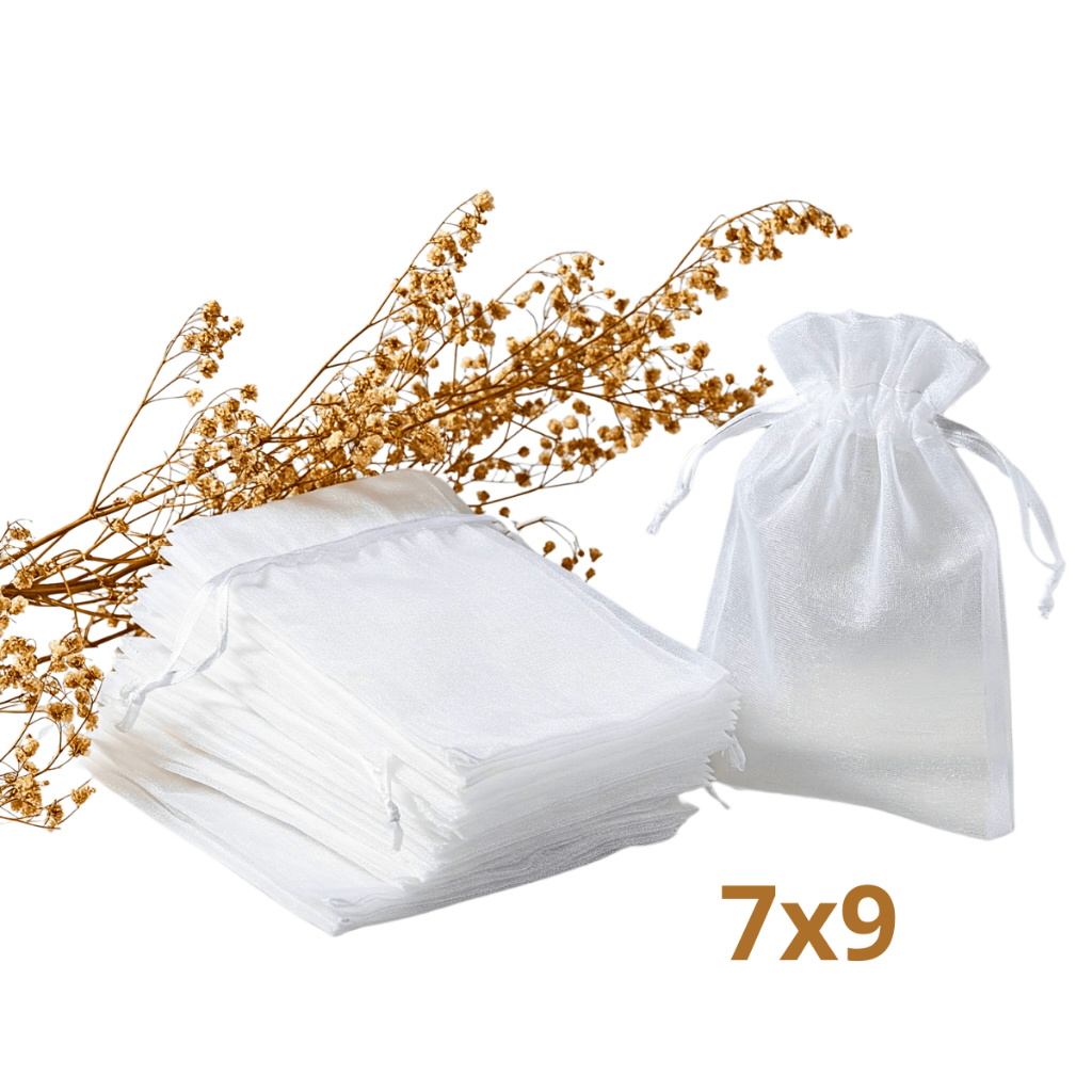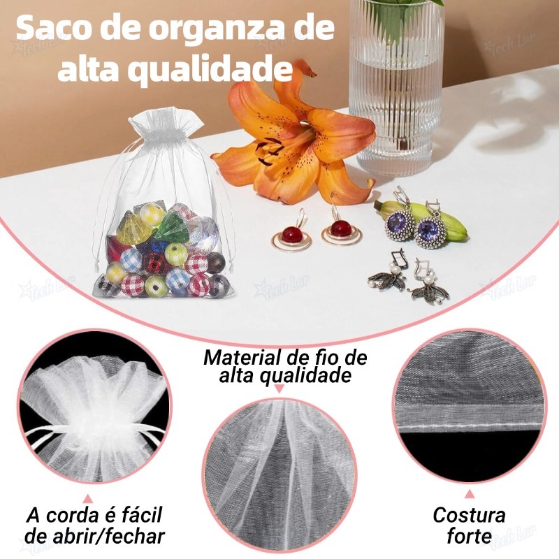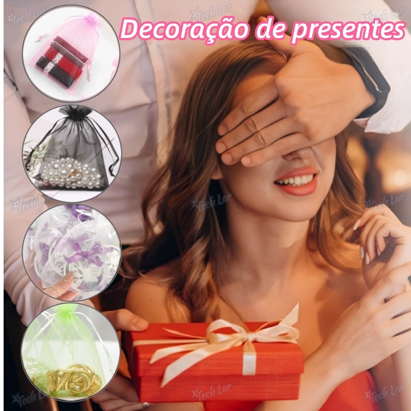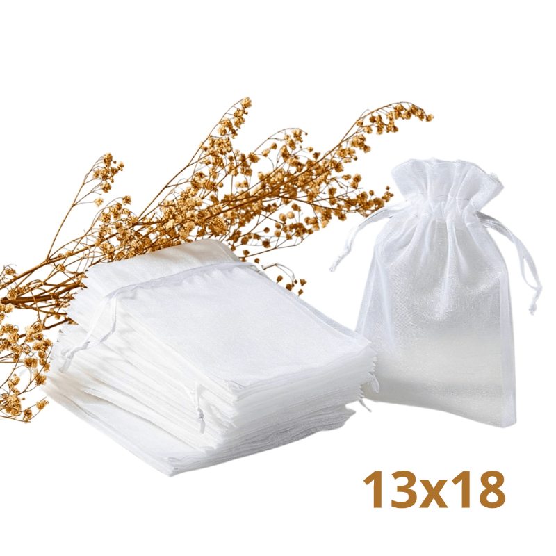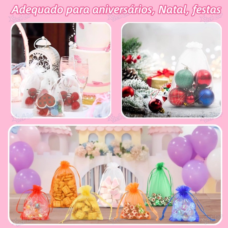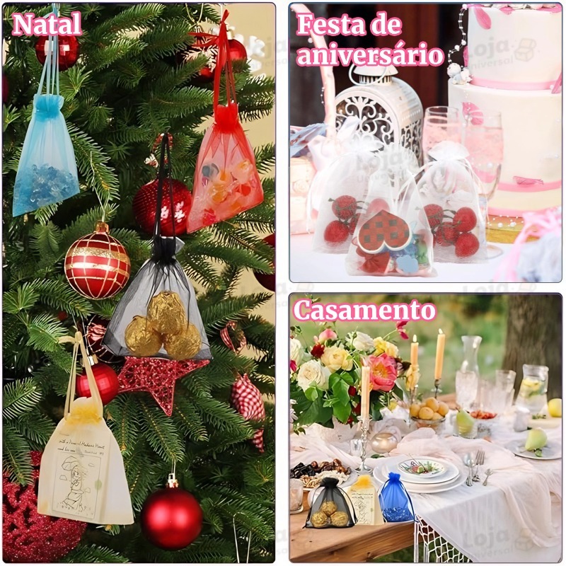 Kit 50/100 Un Saco Saquinho Organza Tule Saquinho 7x9 9x12 10x15 Branco Natal Festa Casamento Natal-TL
