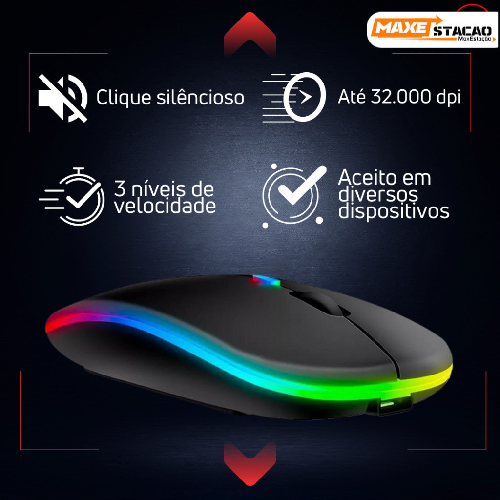 Mouse ergonômico silencioso RGB de carregamento sem fio de 2.4 GHz, adequado para jogos e trabalho