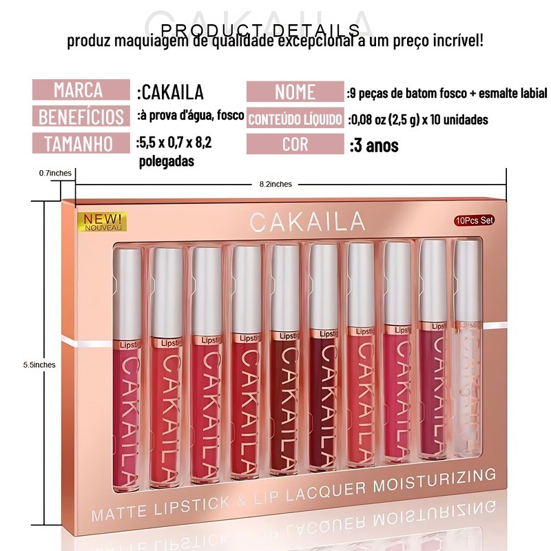 Conjunto Labial Fosco De Veludo CAKAILA De 10 Cores-À Prova D'água, Não Desbota , De Longa Duração