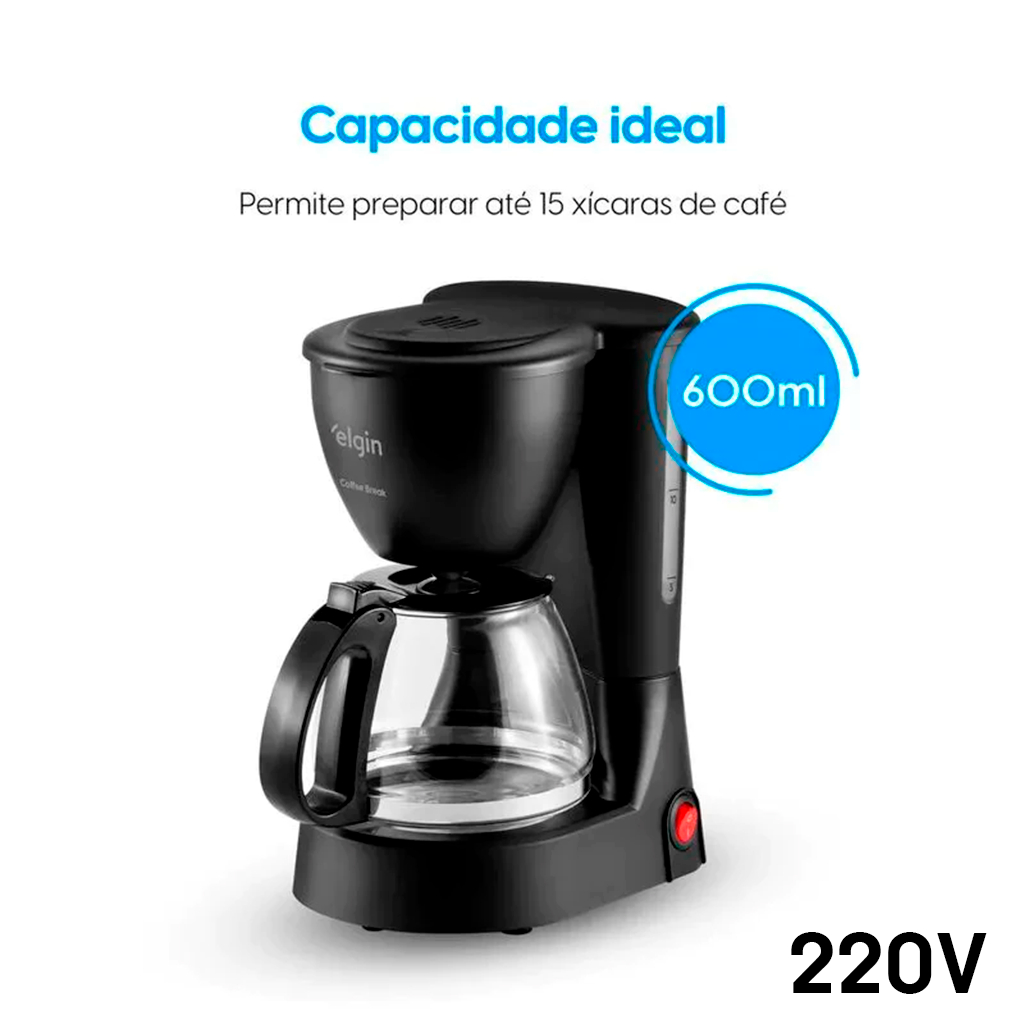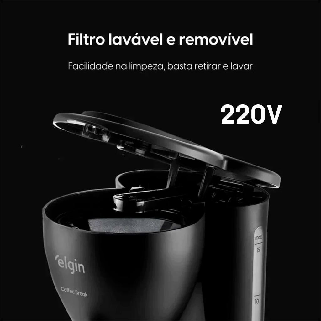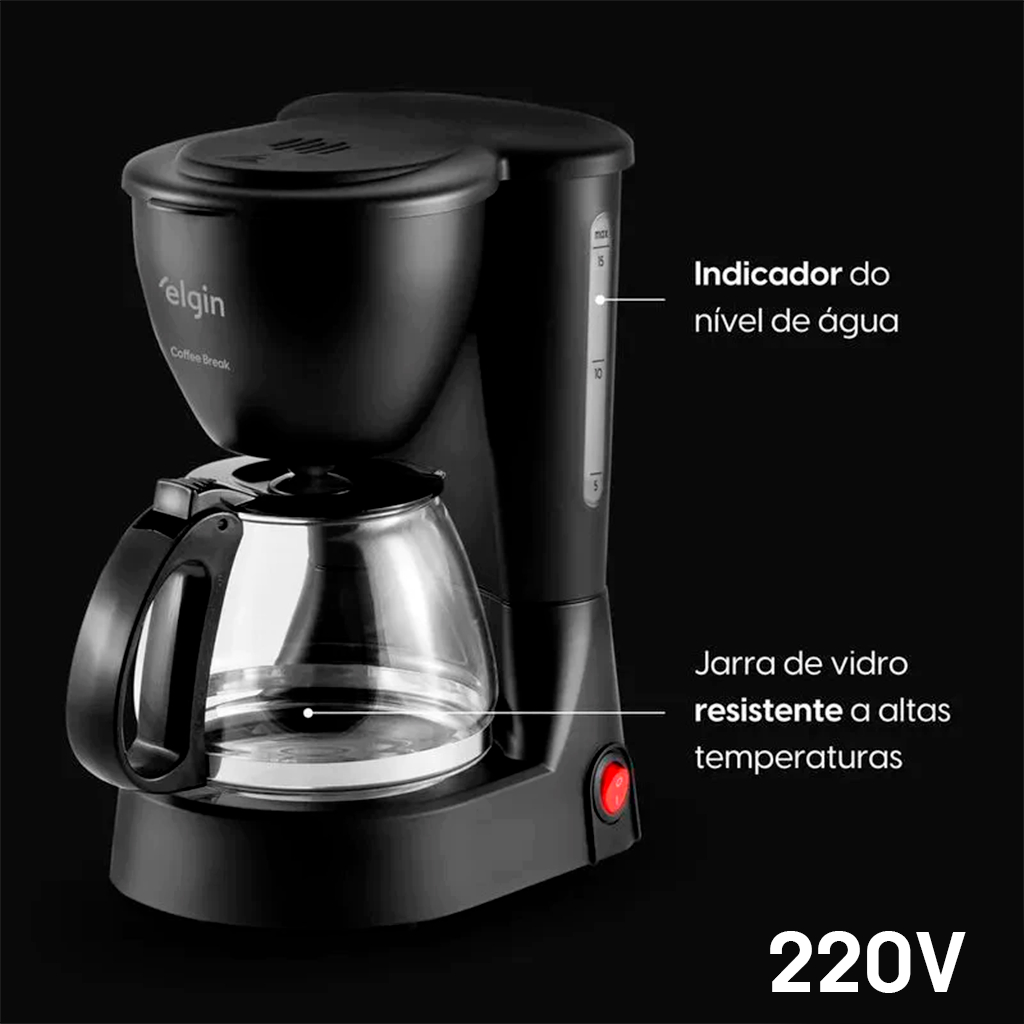 CAFETEIRA ELGIN COFFEE BREAK 15 XÍCARAS (220V) PRETA | JARRA DE VIDRO | SISTEMA CORTA-PINGOS