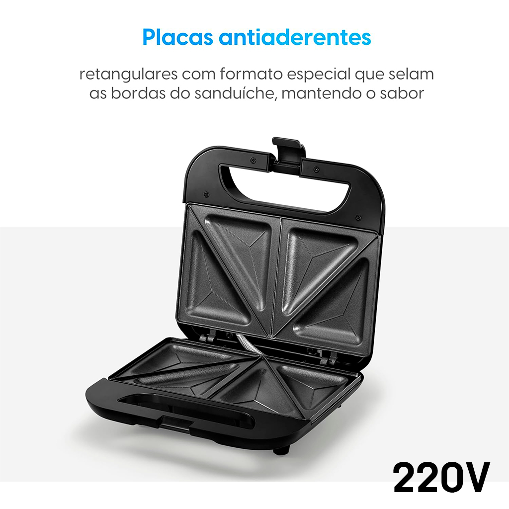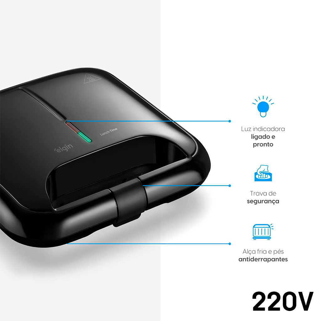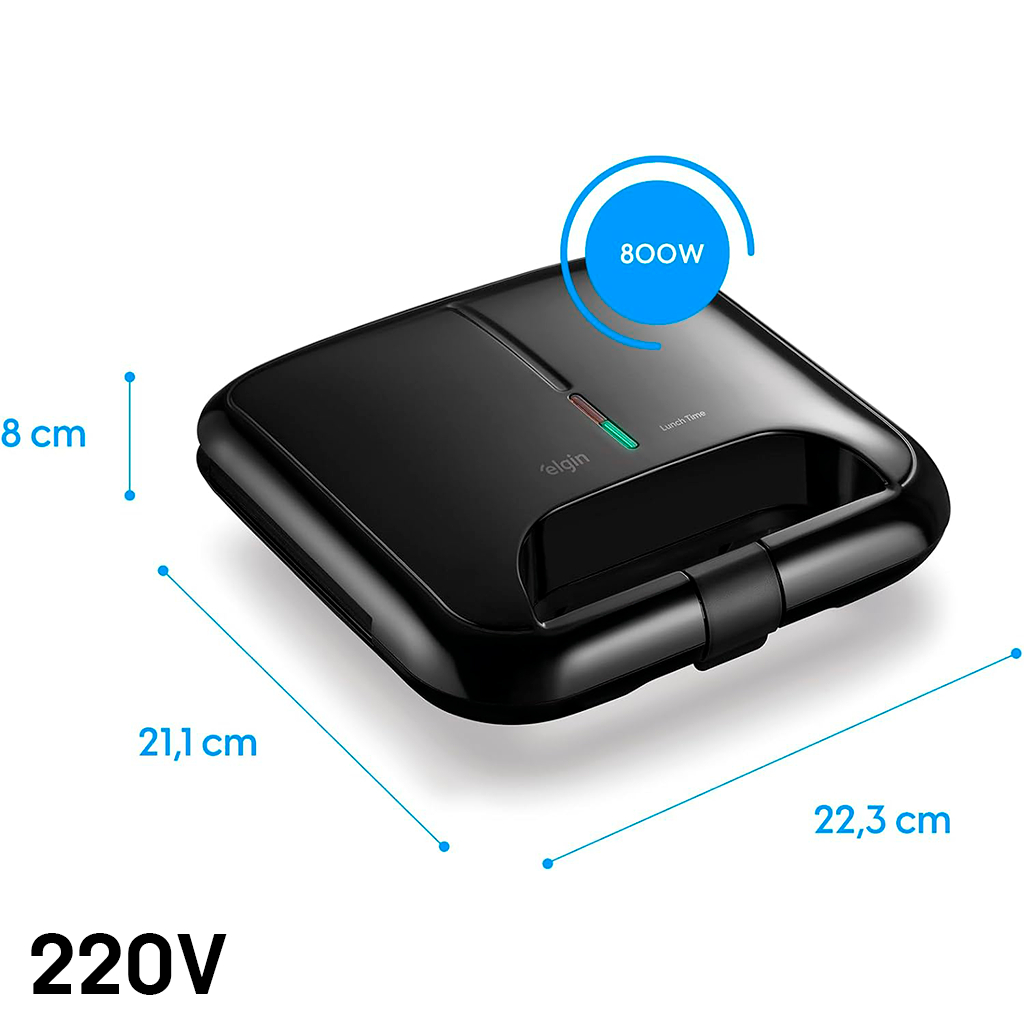 SANDUICHEIRA ELGIN LUNCH TIME 800W (220V) | CHAPAS ANTIADERENTES | AQUECIMENTO RÁPIDO | COMPACTA