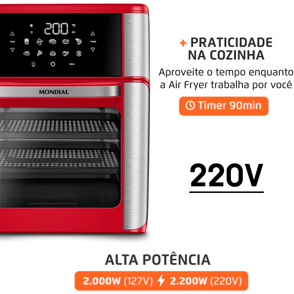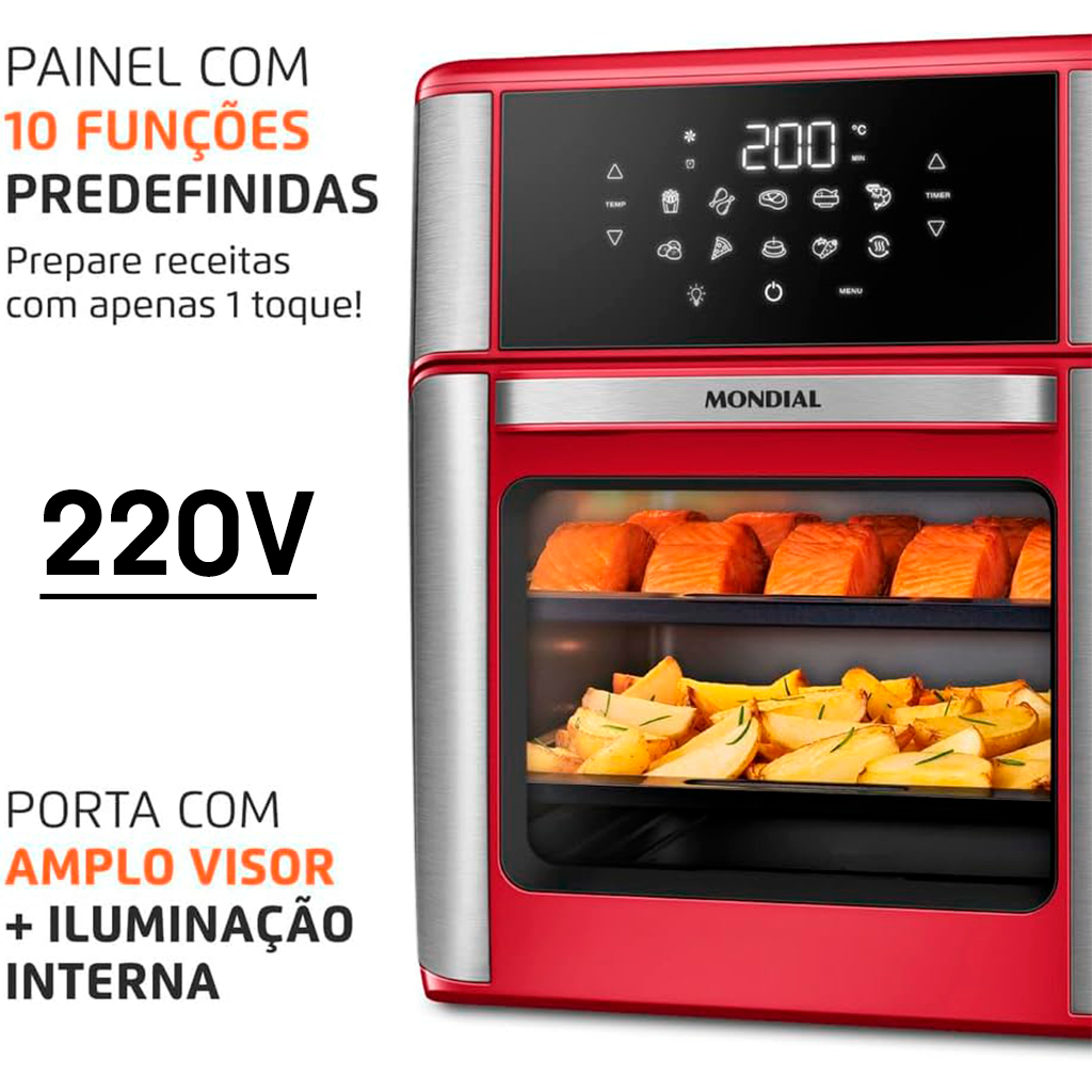 AIR FRYER FORNO OVEN MONDIAL 12L AFON-12L-RI (220V) 2200W VERMELHO/INOX | PAINEL DIGITAL 10 FUNÇÕES