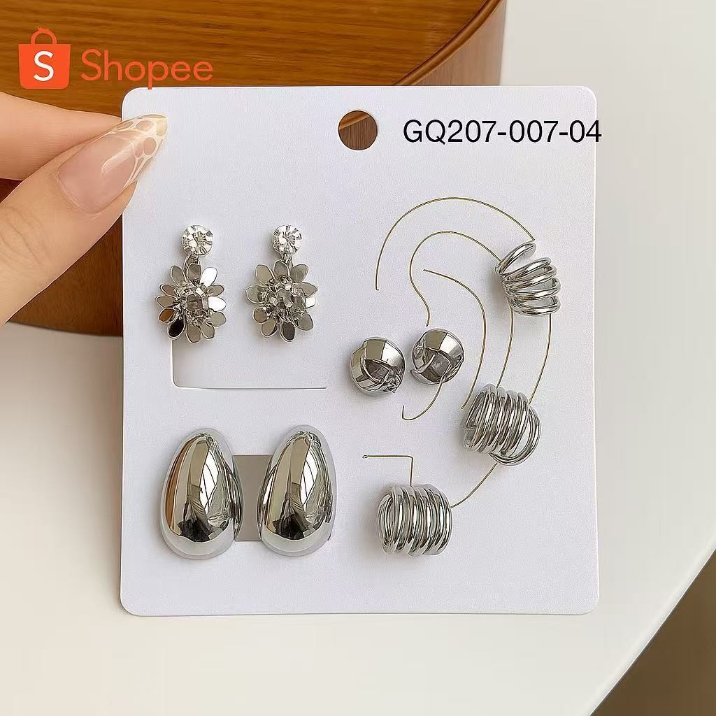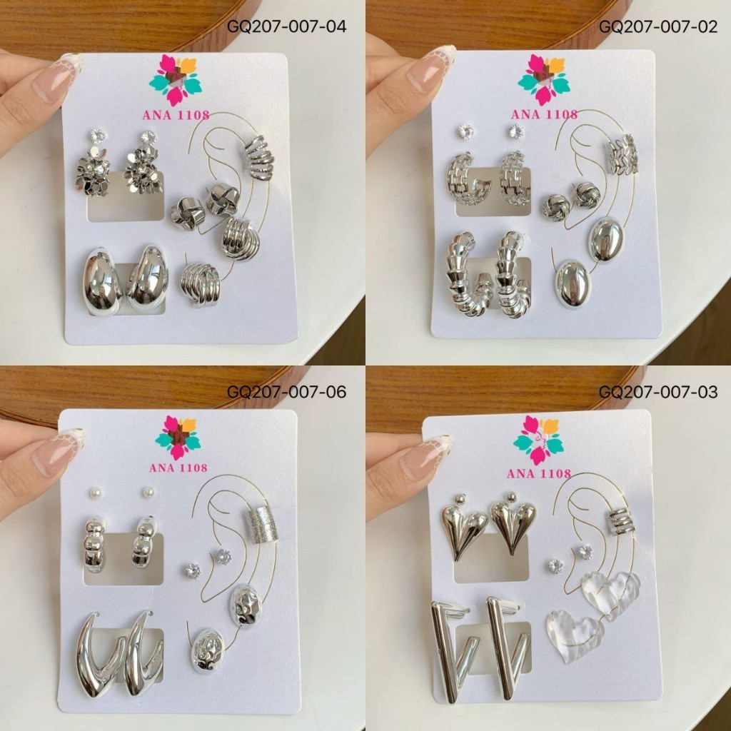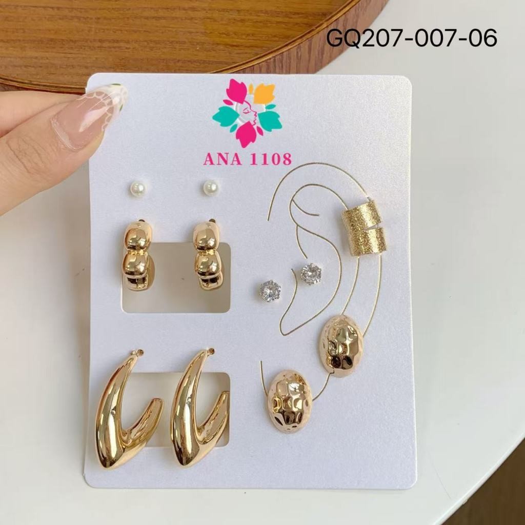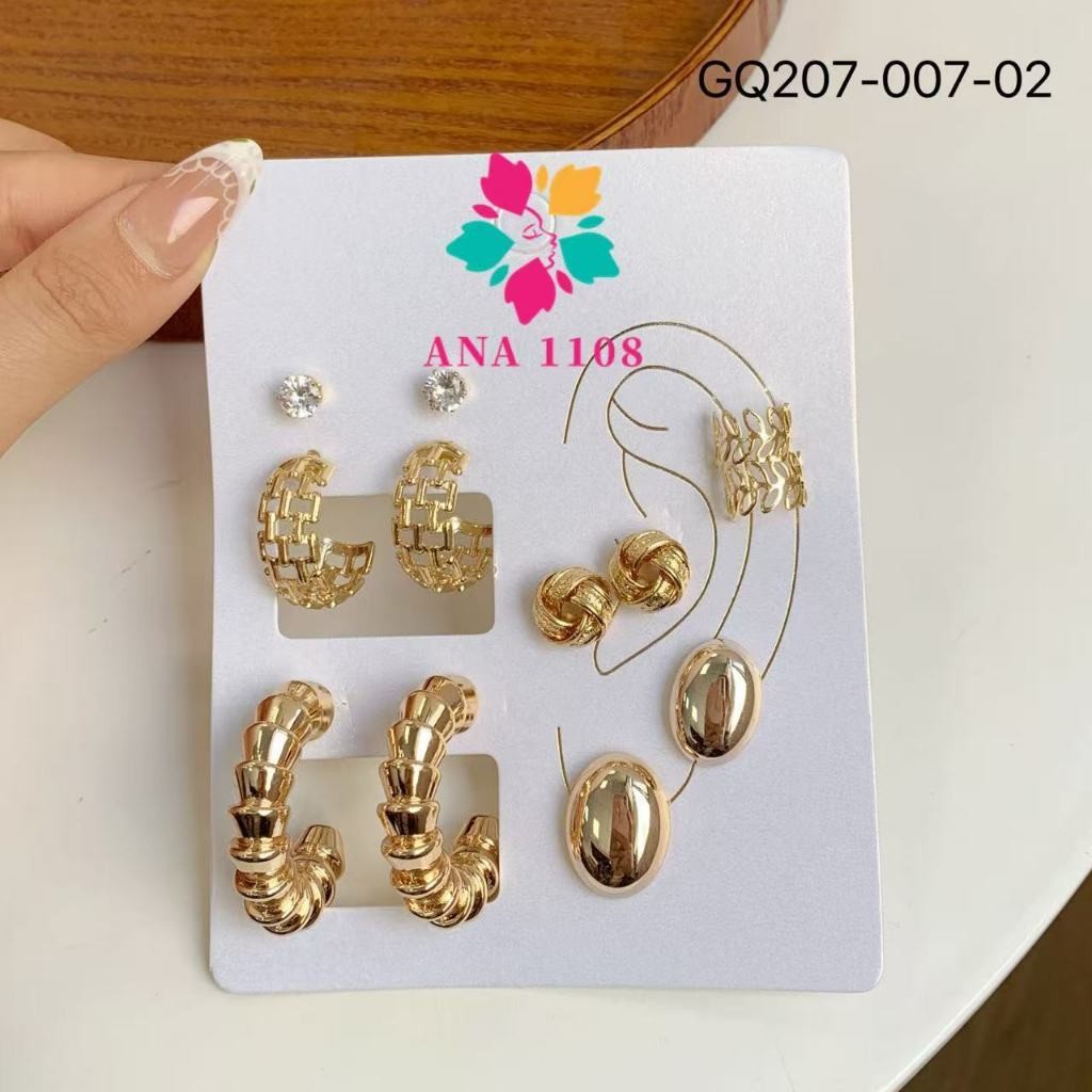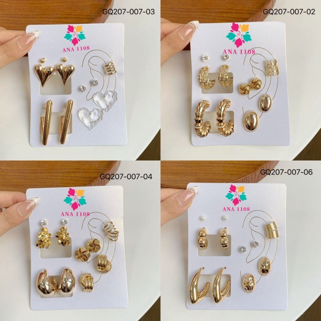 ANA1108 Conjunto de 6 Pares de Brincos-007 Femininos Modernos–Dourado/Prata Brilhante,Vários Estilos