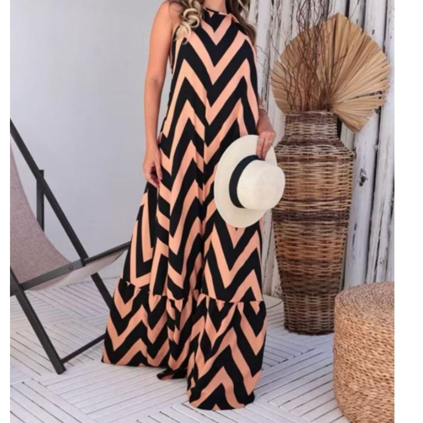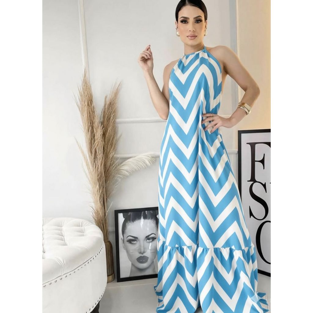 Vestido Longo Feminino Zig Zag Frente Única C Bojo Tecido Duna Para Mulheres