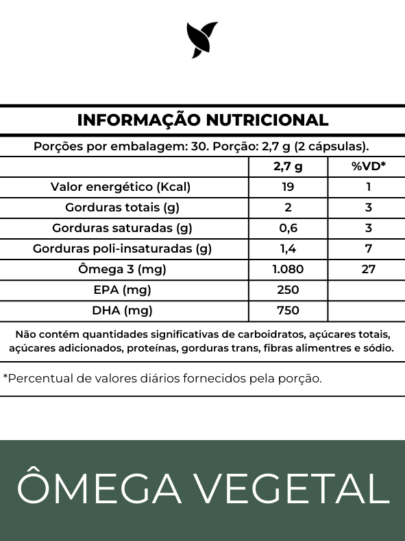 Ômega 3 com DHA 750mg e EPA 250mg de Algas Marinhas - Vegetal 60 Cápsulas - 1 Unidade