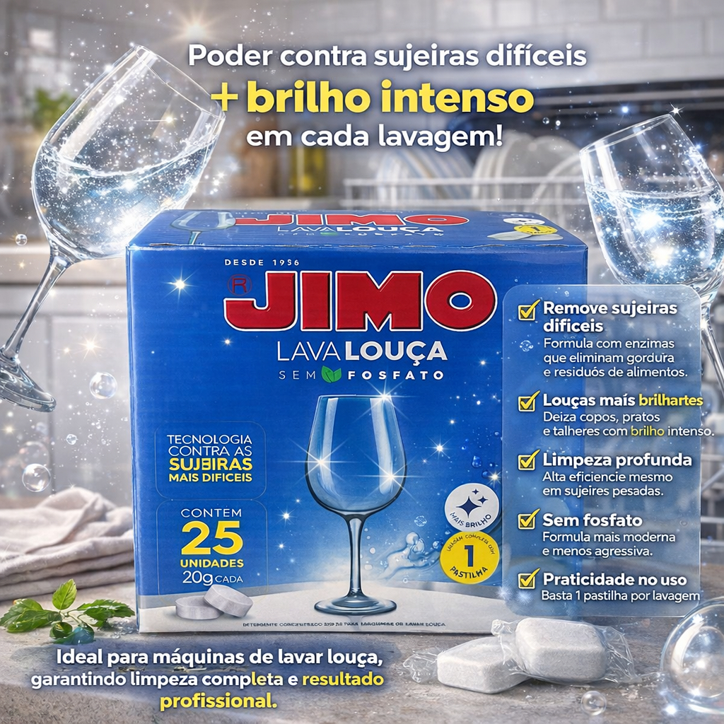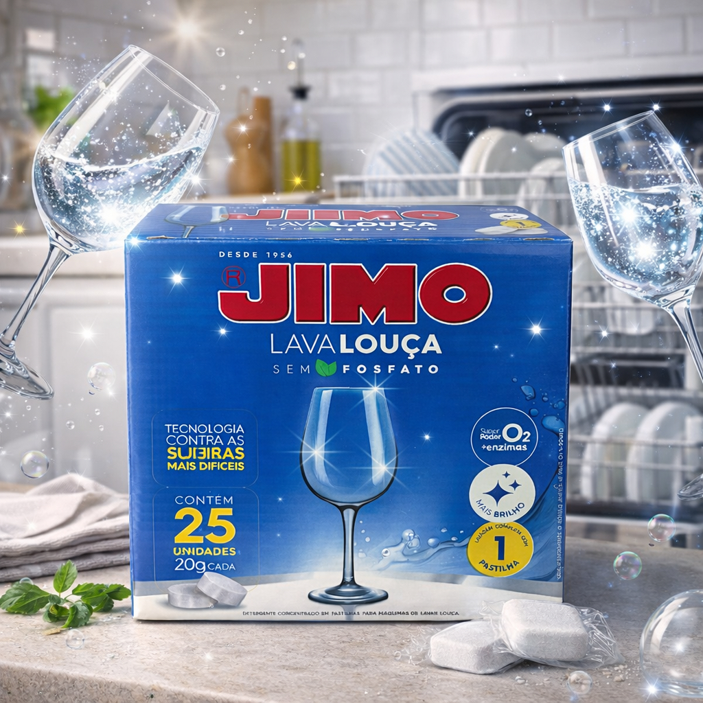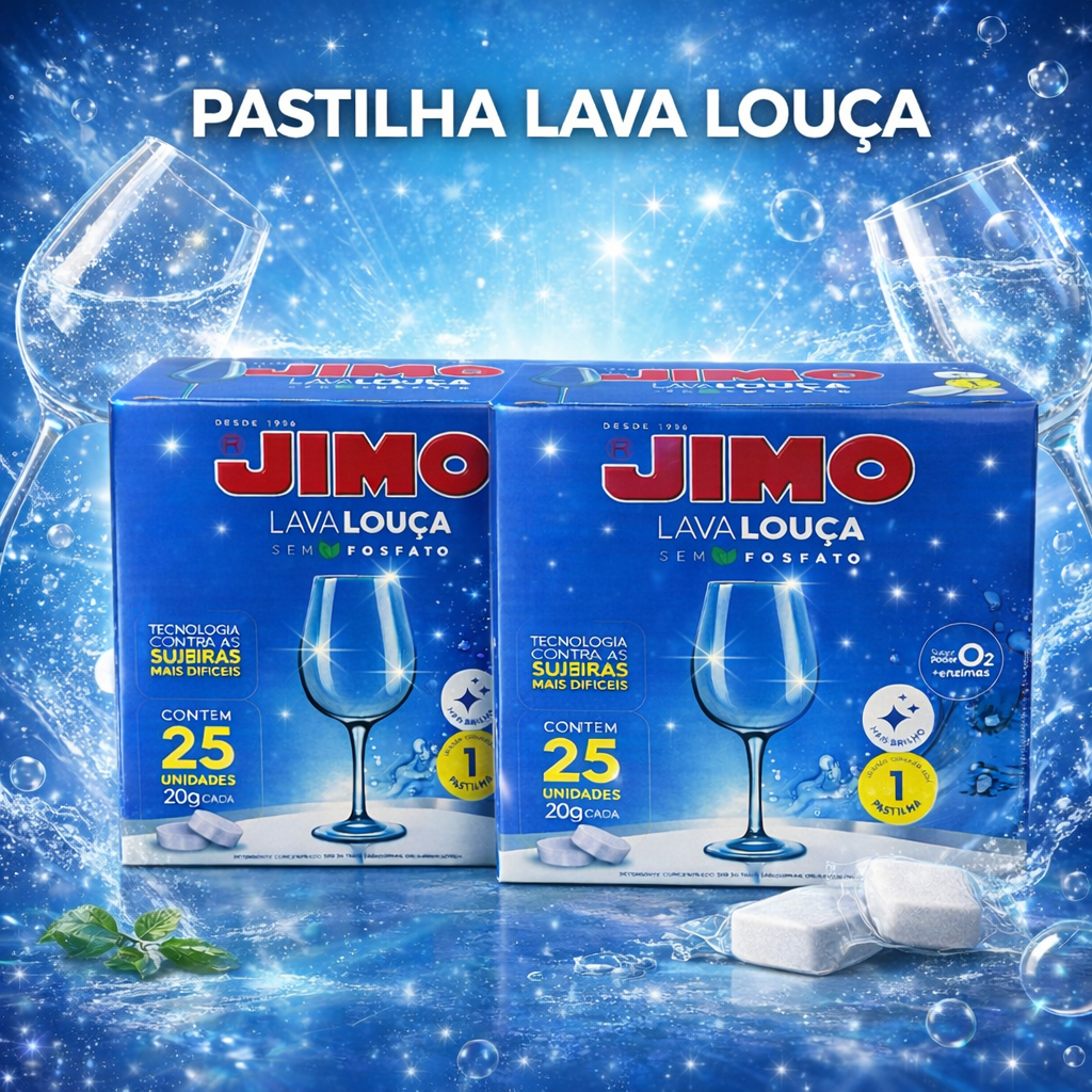 Lava Louça Jimo 25 Pastilhas Concentradas Secante Abrilhantador Detergente