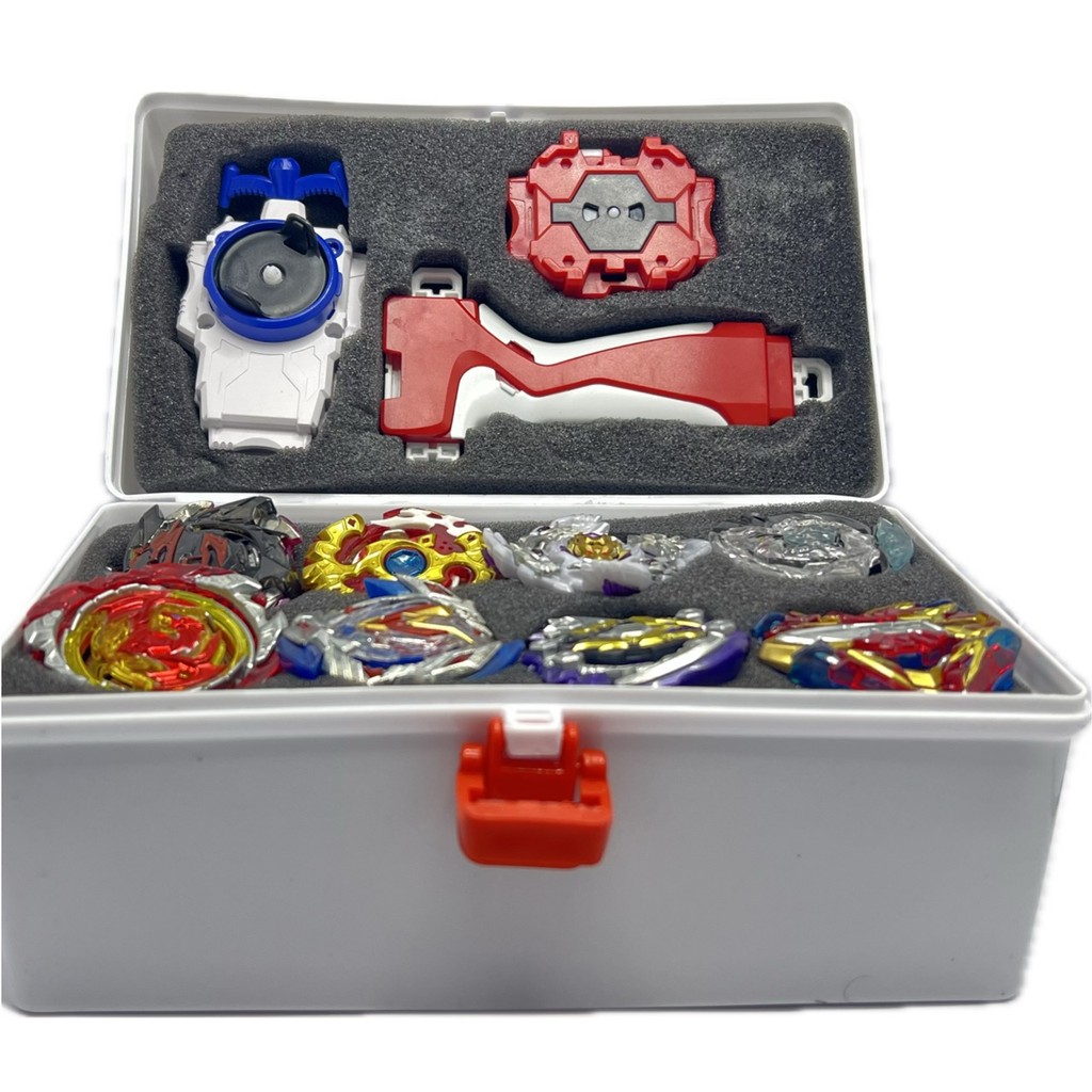 MALETA BEYBLADE COM 12 BEYBLADES+3SUPER LANÇADORES+1GRIP+ADESIVOS