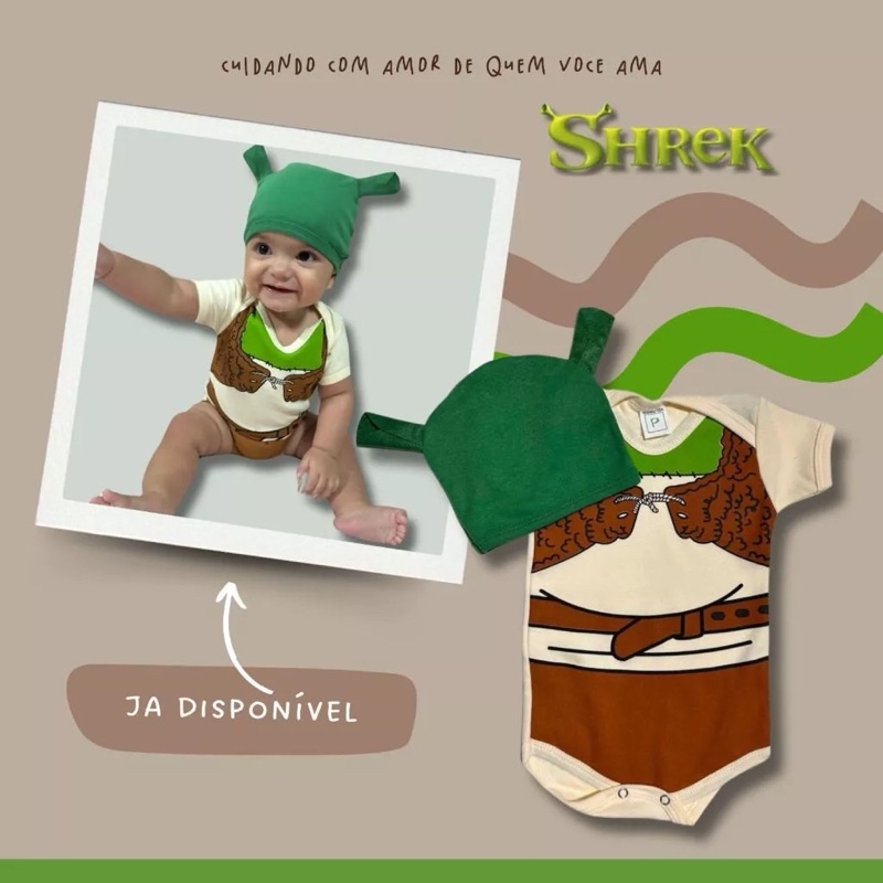 Body do Shrek Bebe Bori + Touca Temático de Mesversario-Shrek (K-2)