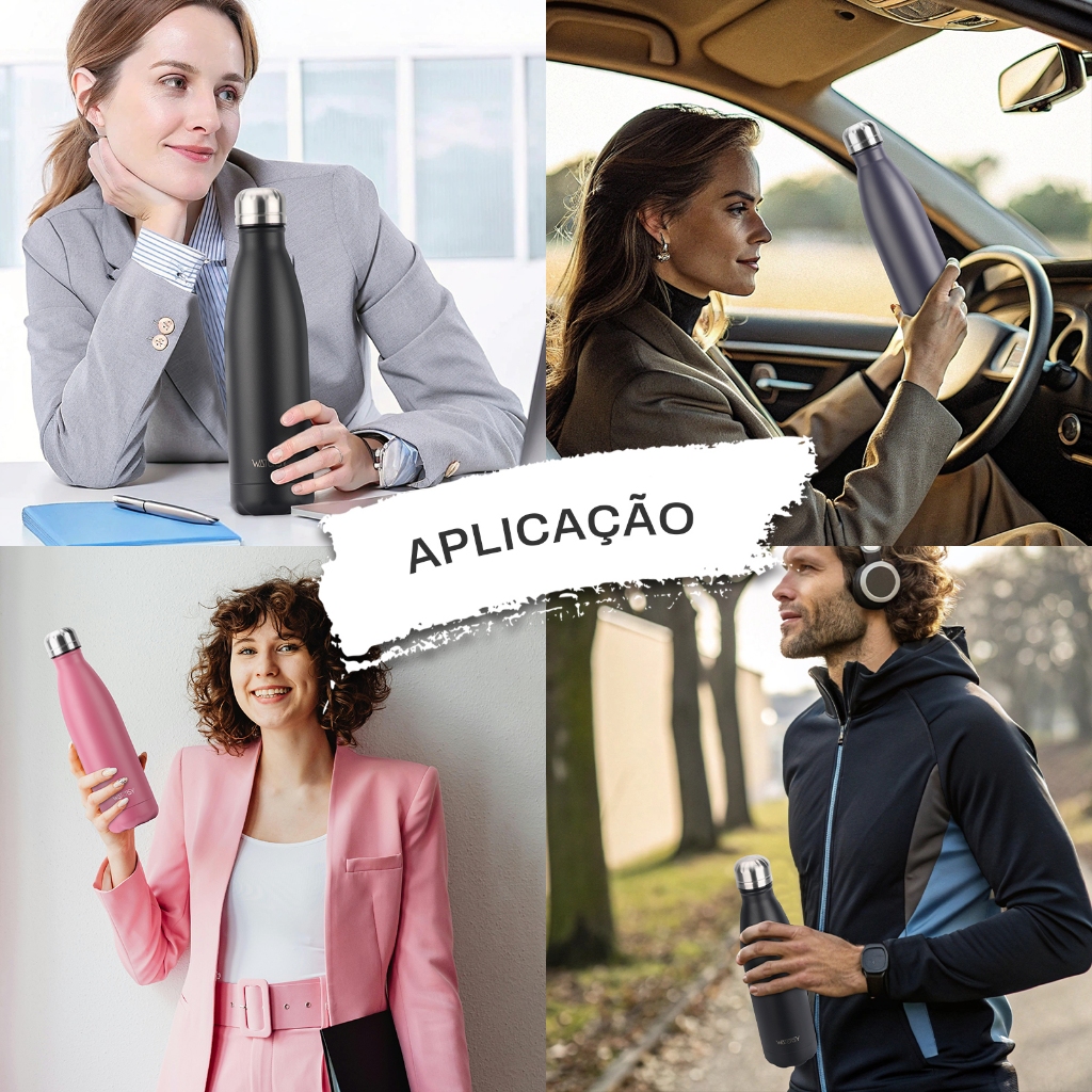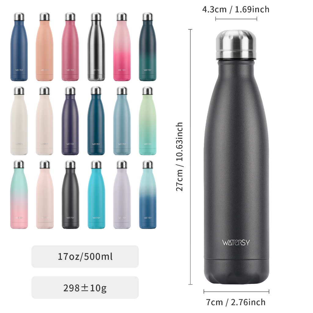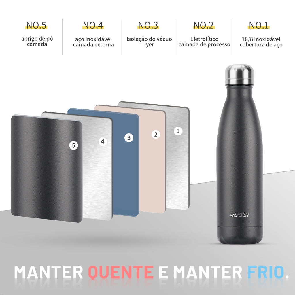 WATERSY Garrafa Térmica De Água Squeeze 500ml Térmica Inox Colorida Academia Escola Academia