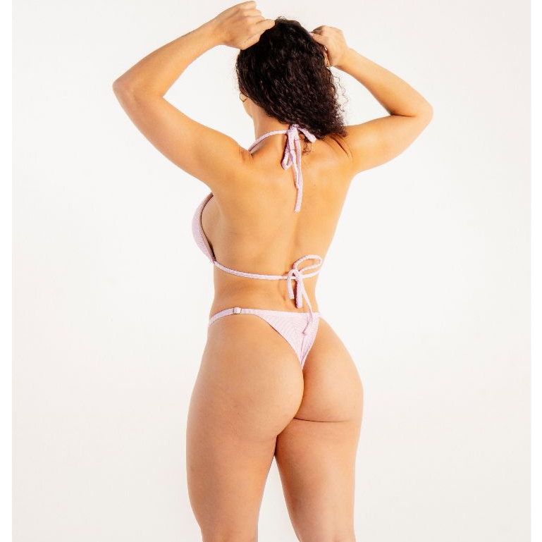 Biquíni Cortininha Texturizado Rosa Bebê com Calcinha Fio Dental Duplo Regulável Marquinha Perfeita