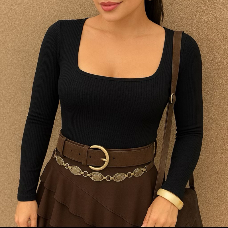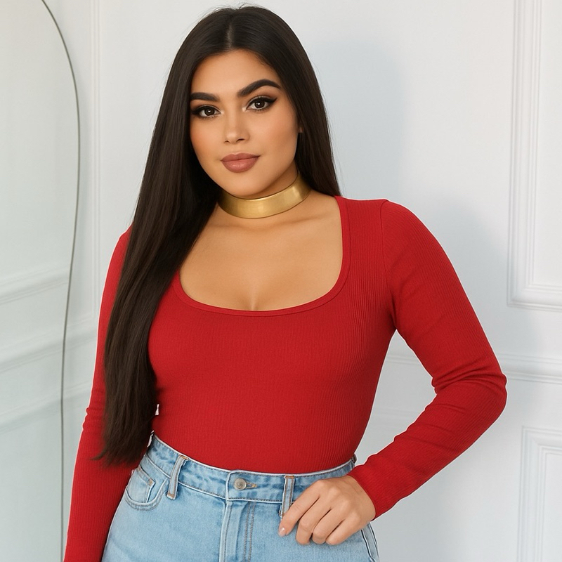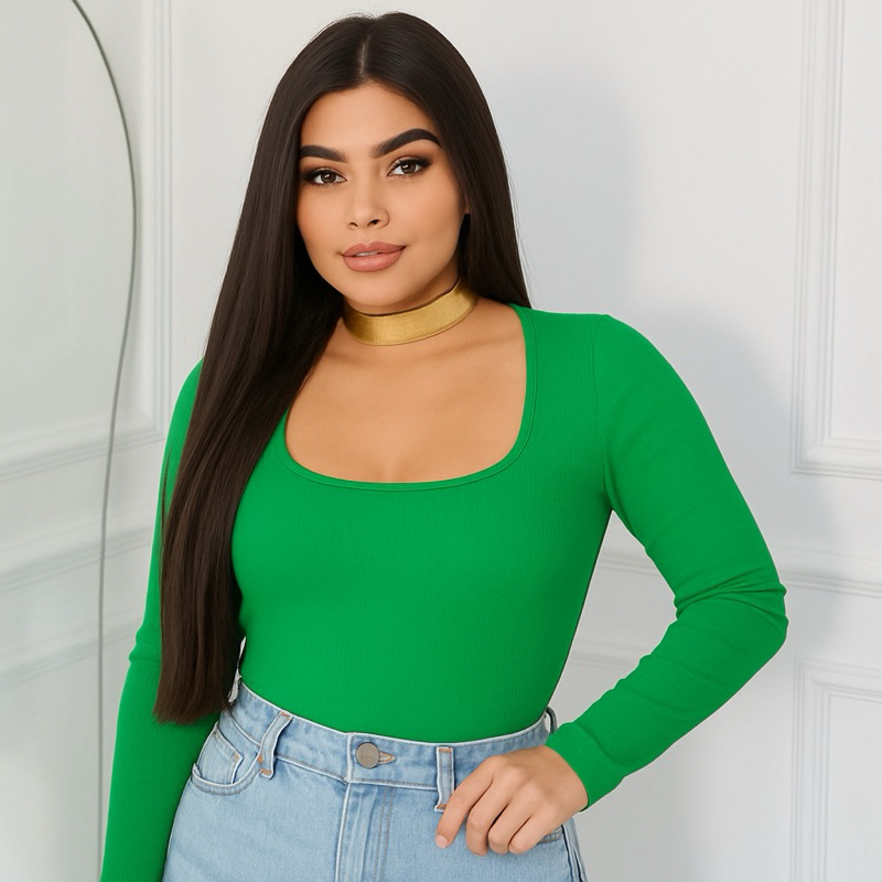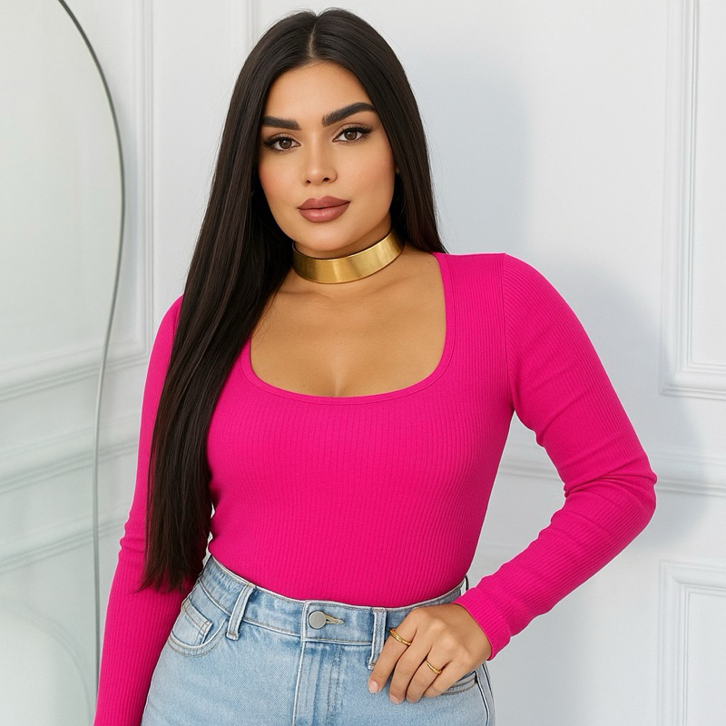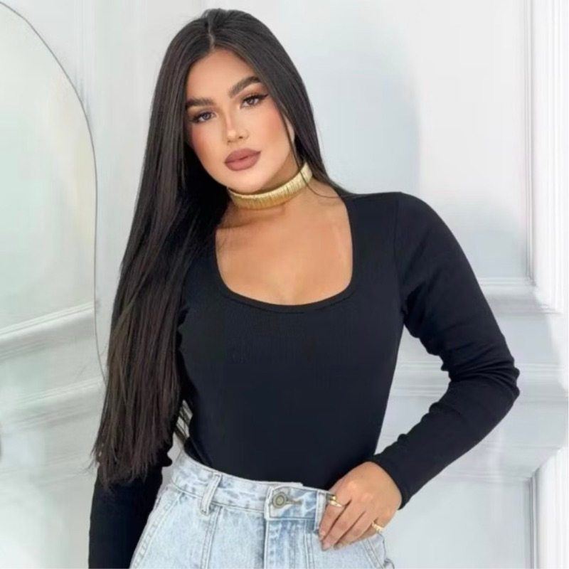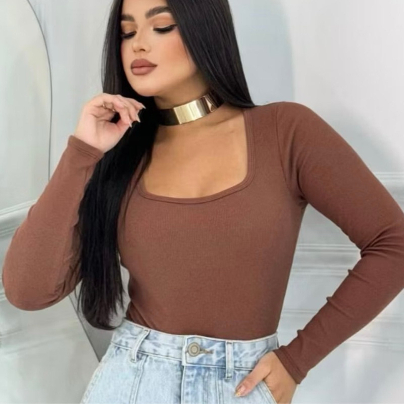 Blusa Manga Longa Gola Quadrada Promoção Tendências