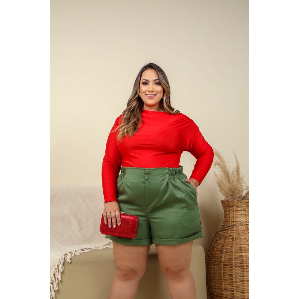 Short Plus Size Feminino Moda Casual Verão Moda Plus Size Short Alfaitaria Boat Coberto Elastico Embutido Estilo Mom