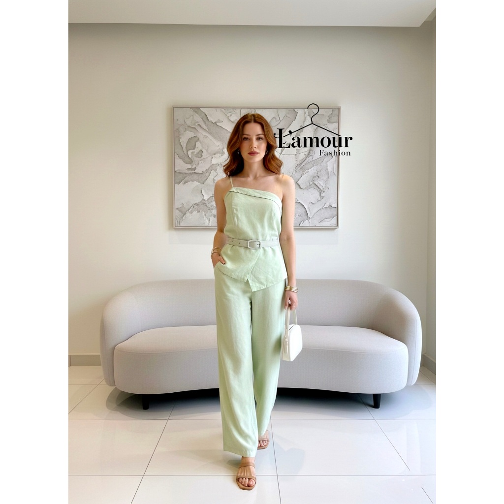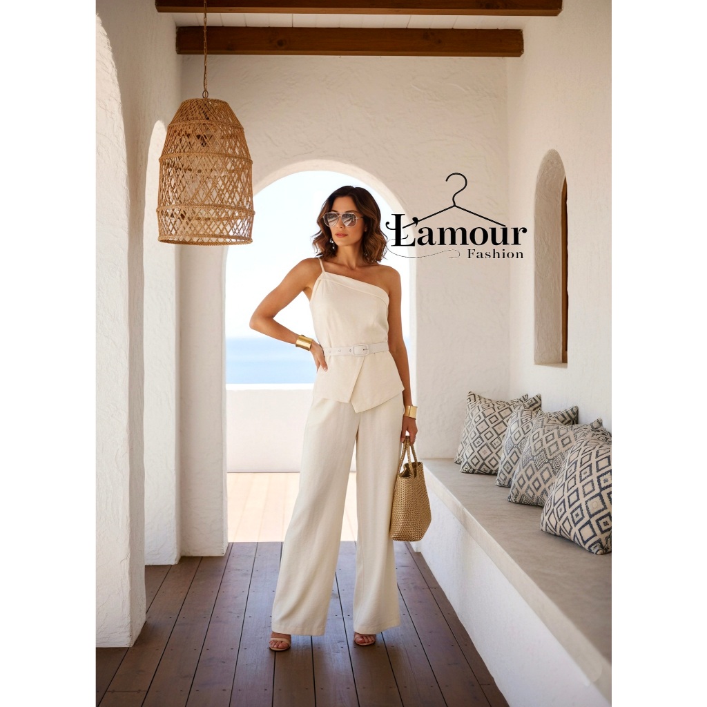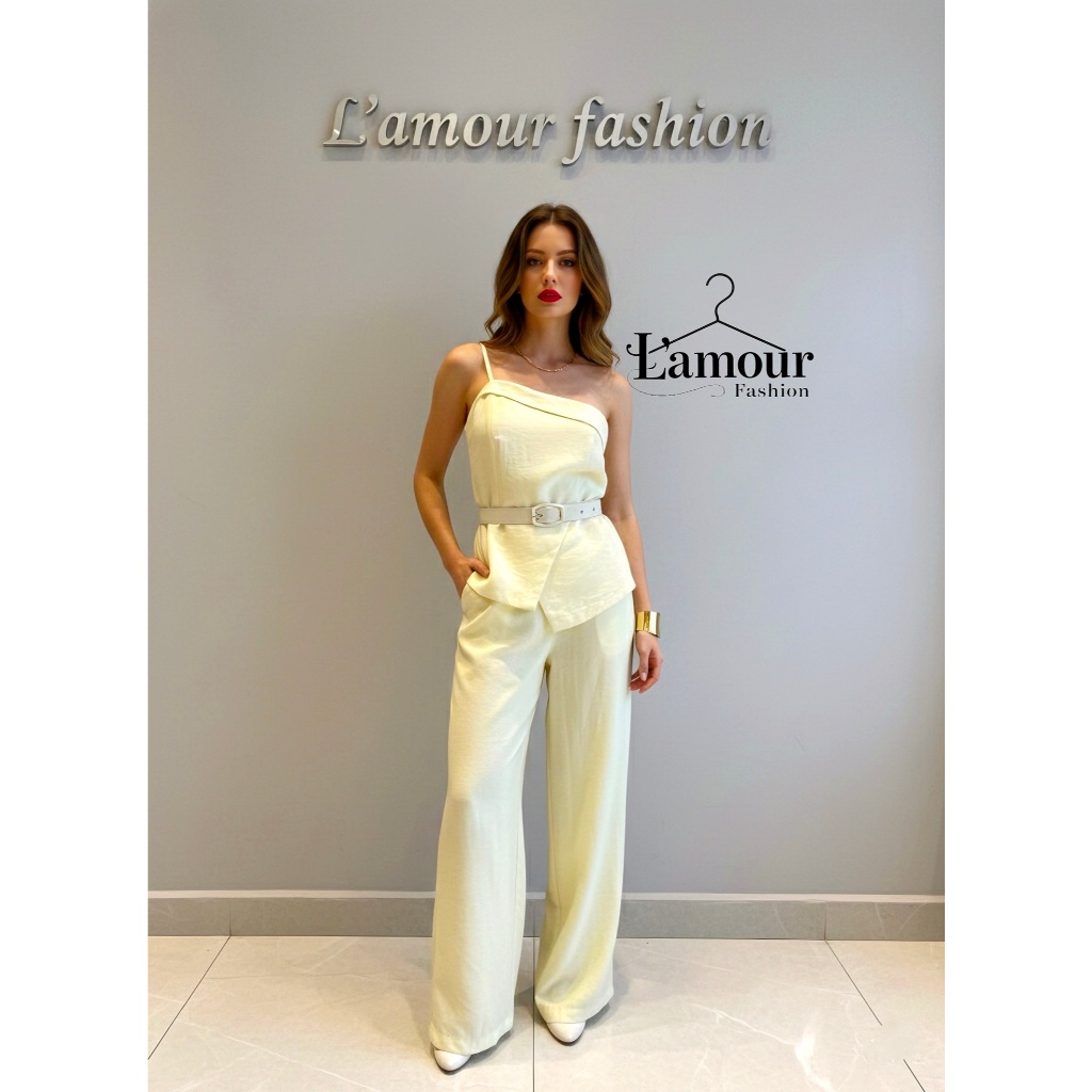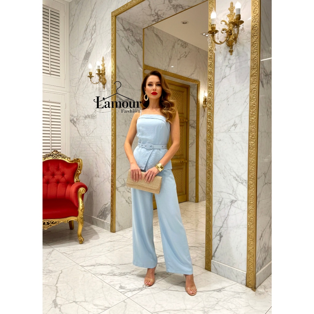 SUPER EM ALTA!!!Conjunto Elegante Feminino Calça Pantalona E Blusa Alça Nula Com Cinto Em Tecido Marrant Codigo 1113l