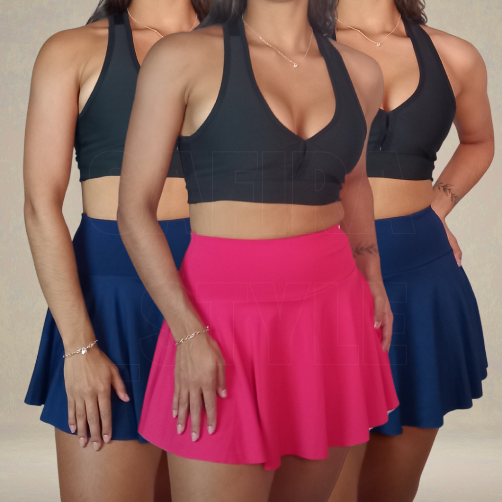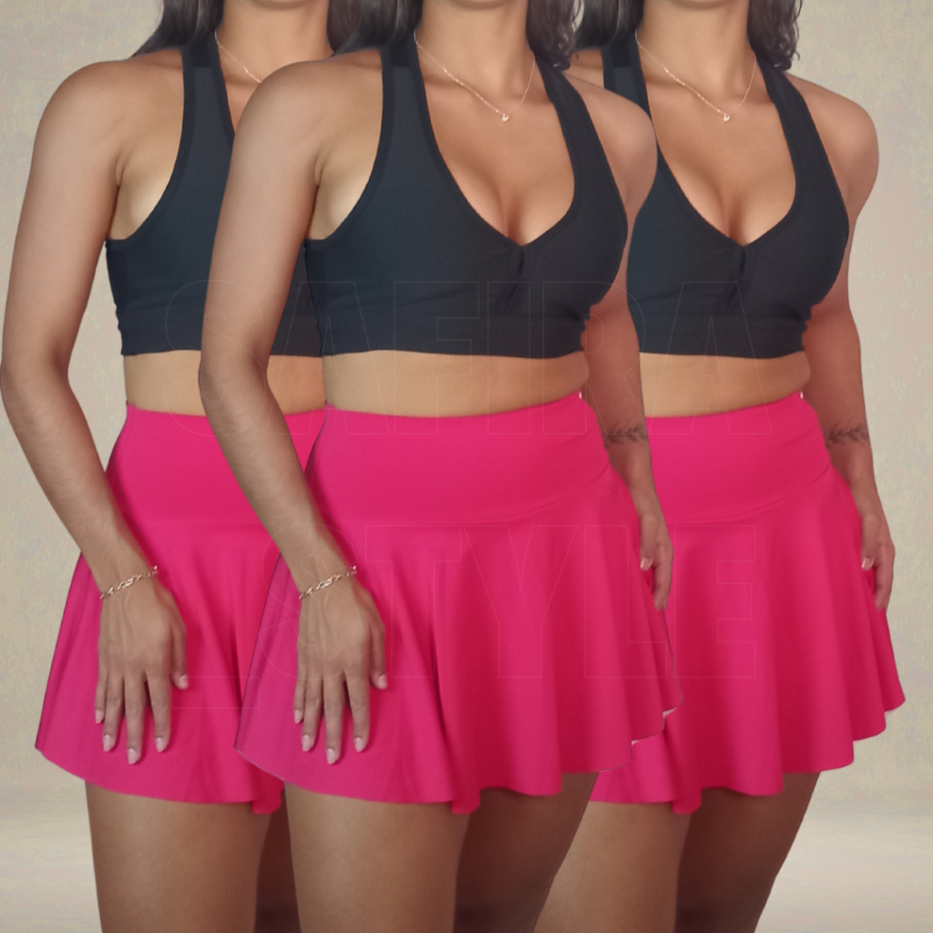 Kit 3 Short Saia Feminino Fitness de Academia Cintura Alta Cós Alto Tapa Bumbum Zero Transparencia