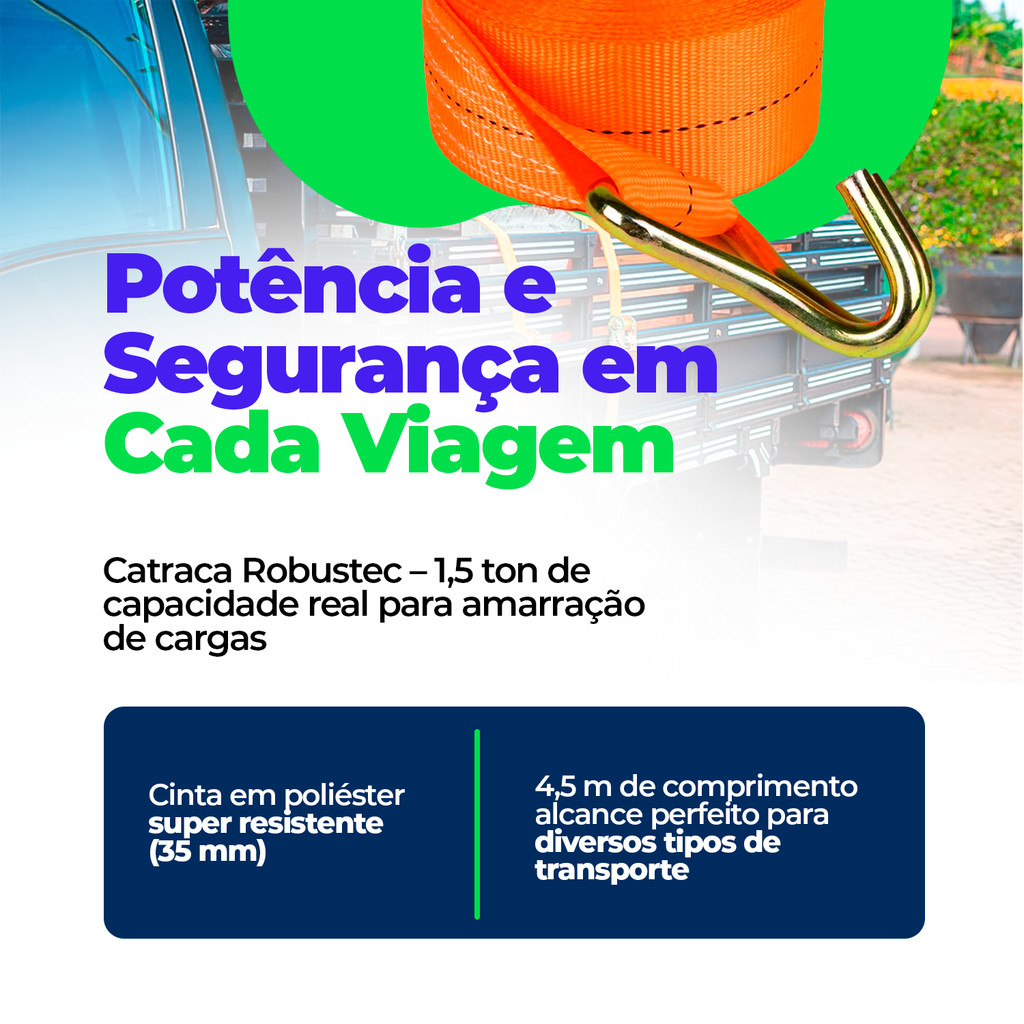 Cinta com Catraca 1.5 Tonelada 35mm 4.5 Metros Robustec Reforçada Carga de Caminhão