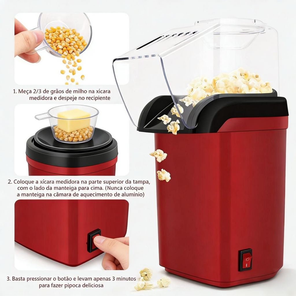 Pipoqueira Elétrica Ar Quente Máquina Fazer Pipoca Sem Óleo Minijoy - 110v