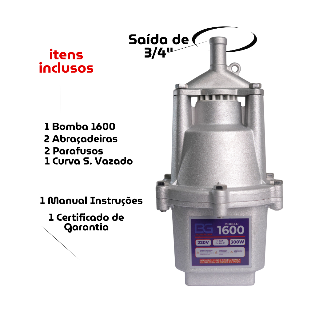 Bomba Sapo De Água para poço BG - 1600 - Submersa Saída 3/4" Bombalger