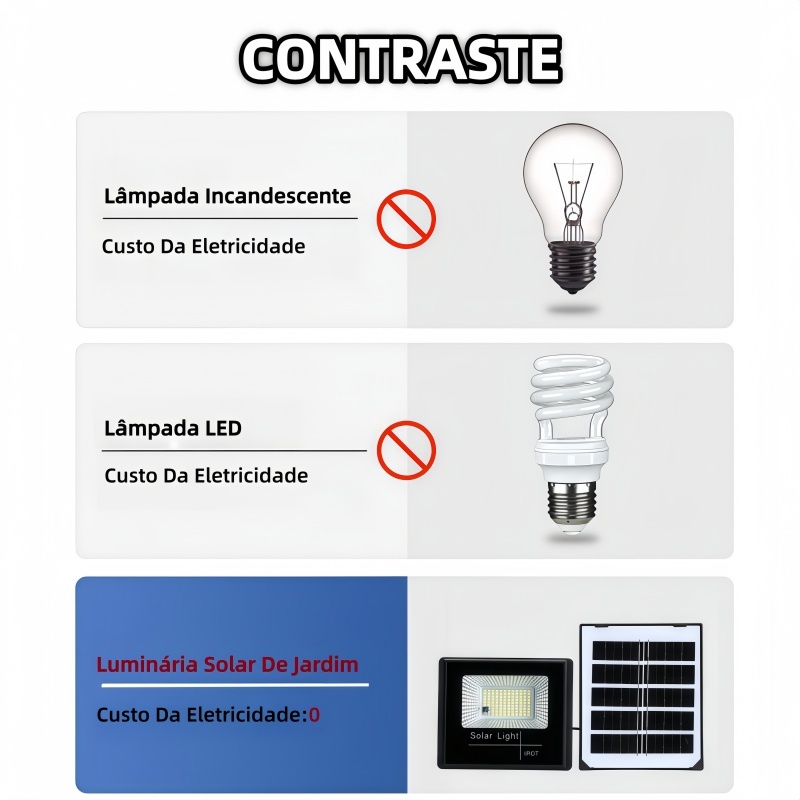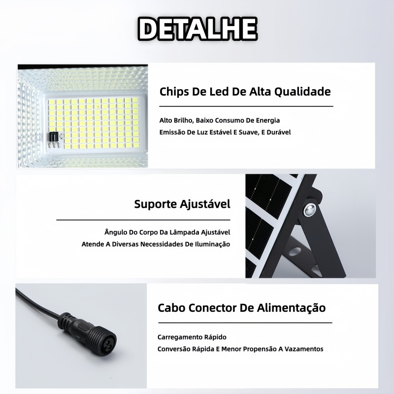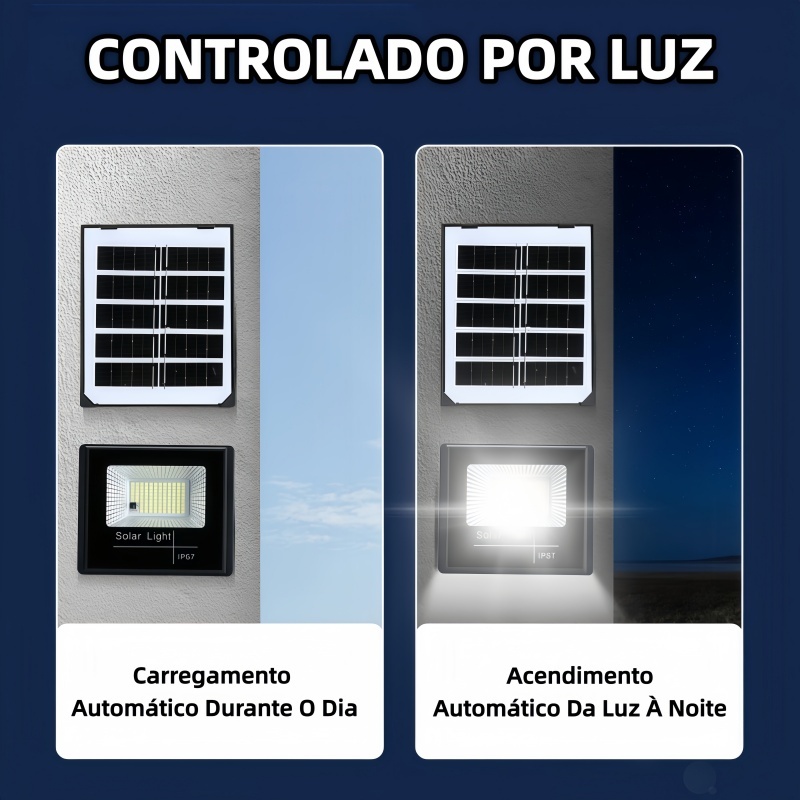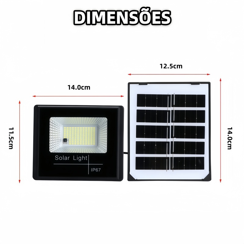 Refletor Solar LED 100w Holofote Placa Solar Prova D'àgua C/placa Solar 2EM1 para Ambientes Externos