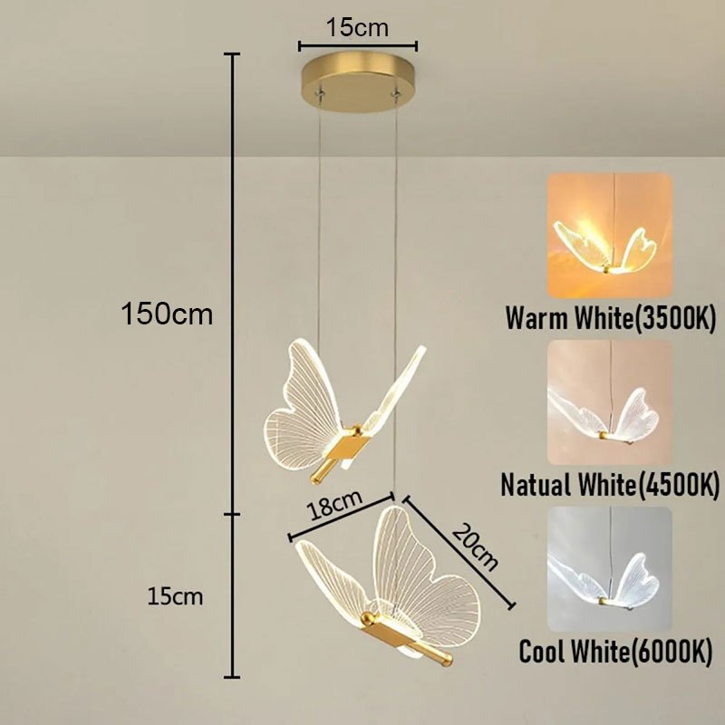 Luminária Pendente Borboleta Dourado Moderno 3 Cores Led Para Quarto Estar Jantar Corredor Criativo