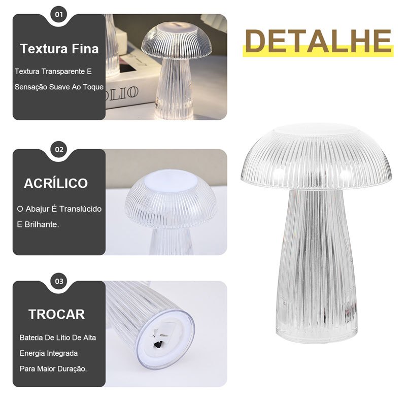 Luz Noturna Luminária Cogumelo LED Transparente Decoração Moderna Minimalista Luz RGB
