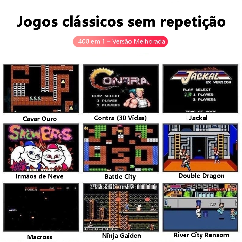 Mini Console Nintendo: +400 jogos para 1 ou 2 players! Diversão com clássicos retrô e os melhores dos anos 80.